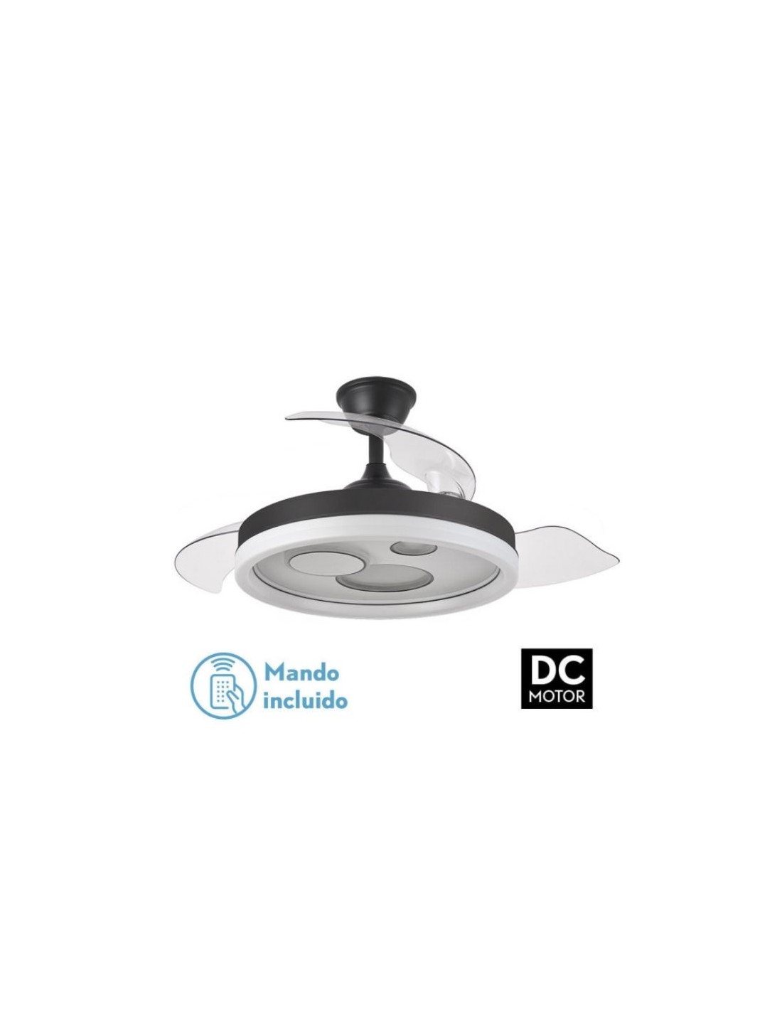 Lampara ventilador de techo con aspas ocultas DC en Negro con mando a distancia- Olimpia