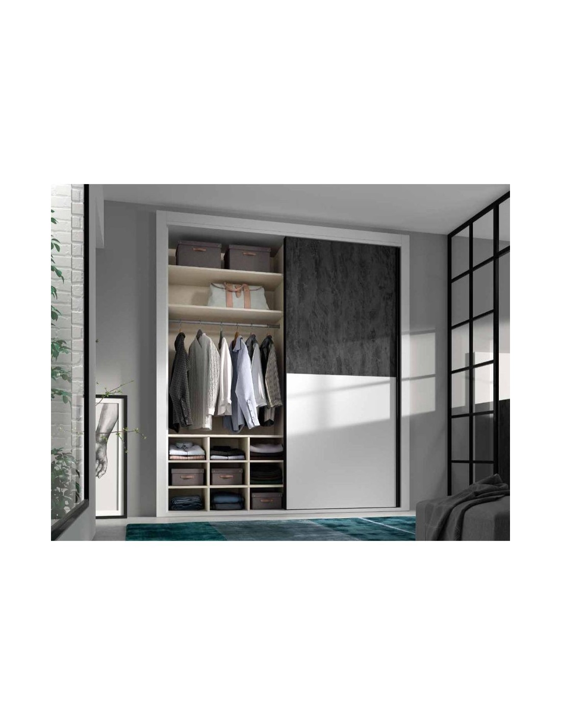 Armario a medida con puertas correderas batientes y rincon con varios interiores disponibles adaptado (8)