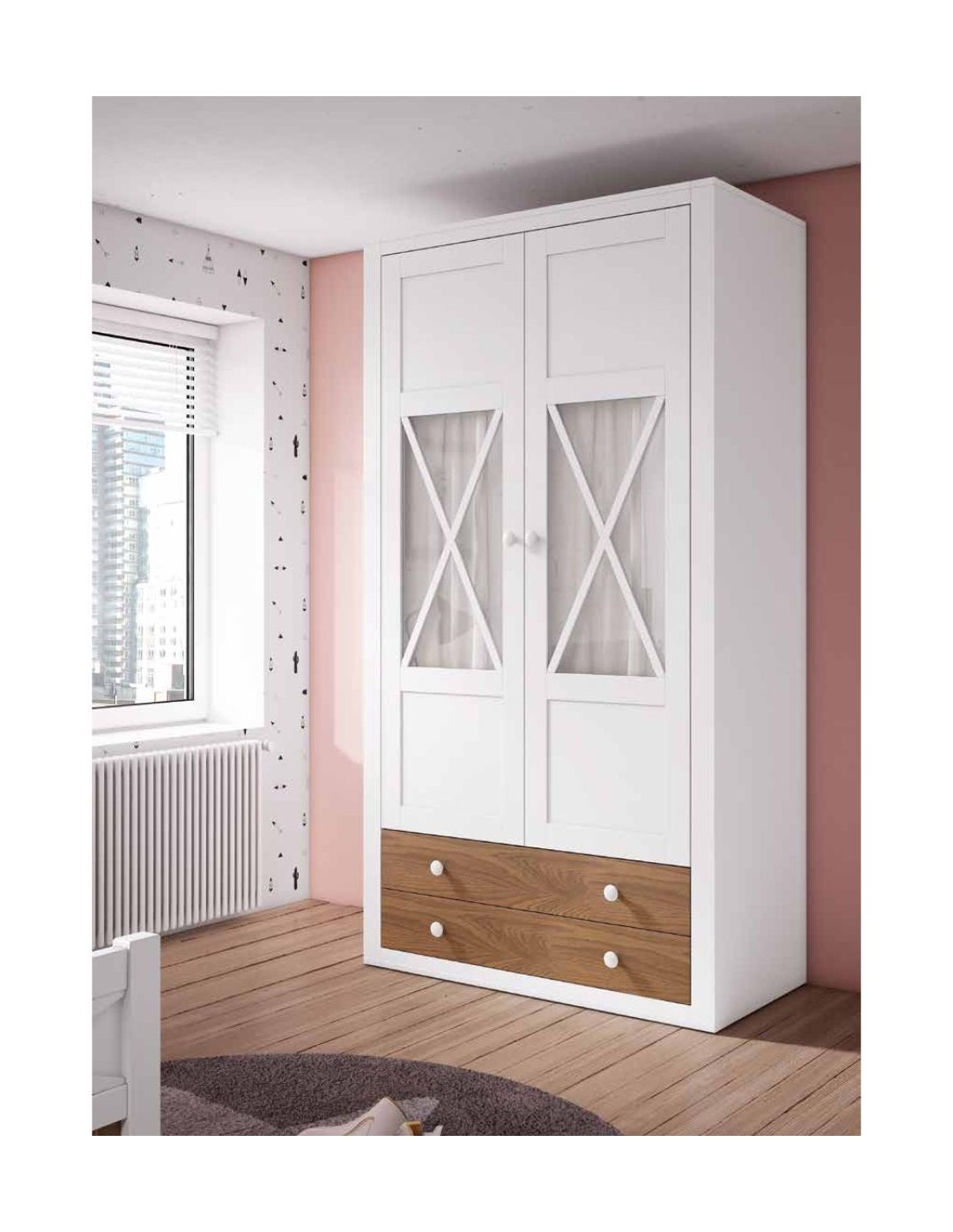Armario a medida en madera con frentes de cruceta cajoneras interiores y diseño personalizado (3)