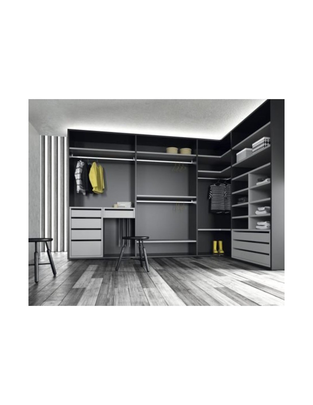 Le diseñamos su vestidor a medida haciéndole un dibujo en 3D para que pueda ver cómo quedaría montado y poder realizar los cambios que desee sobre el diseño y hacer pruebas de color y accesorios.