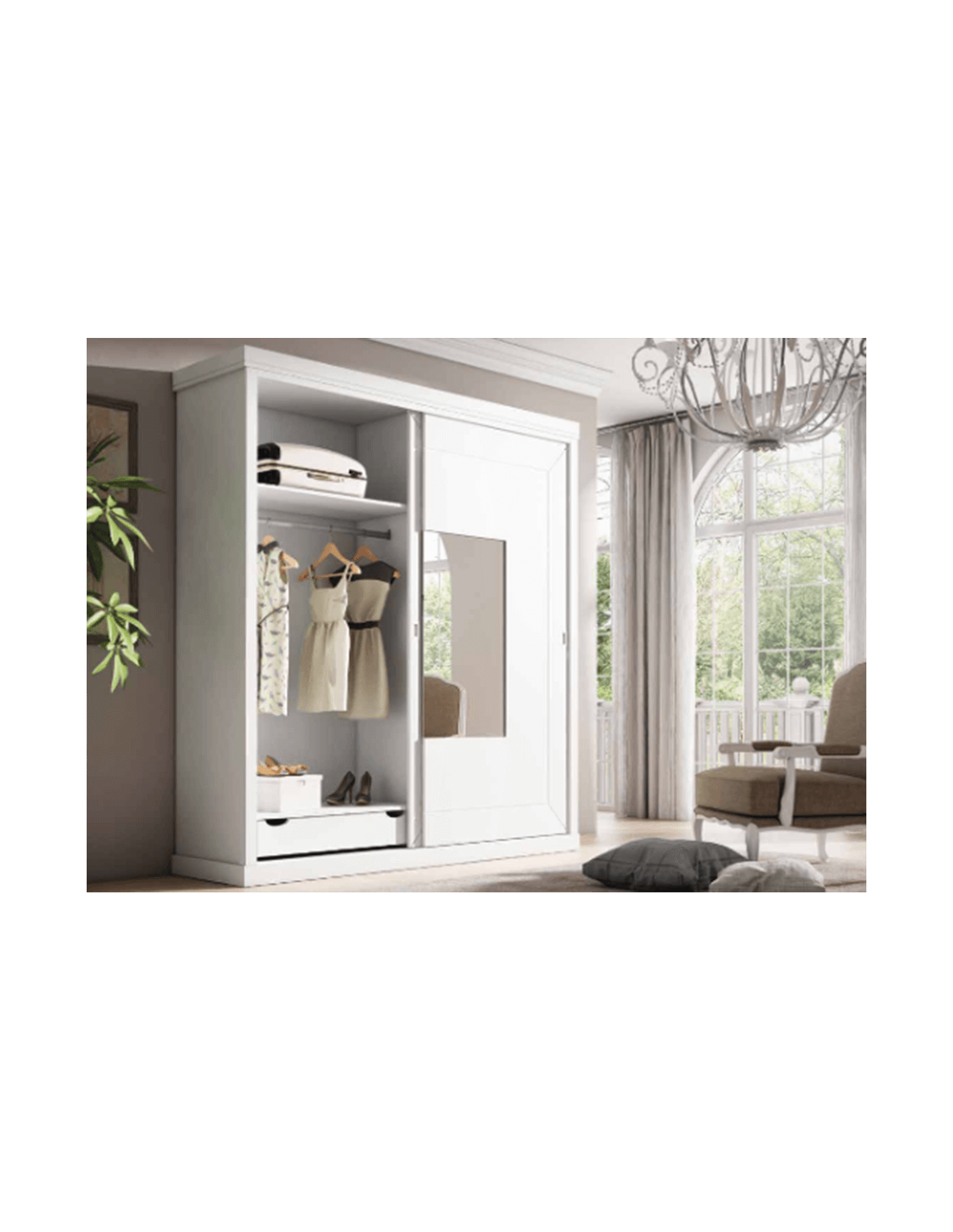 Armario dos puertas correderas con espejo central abierto