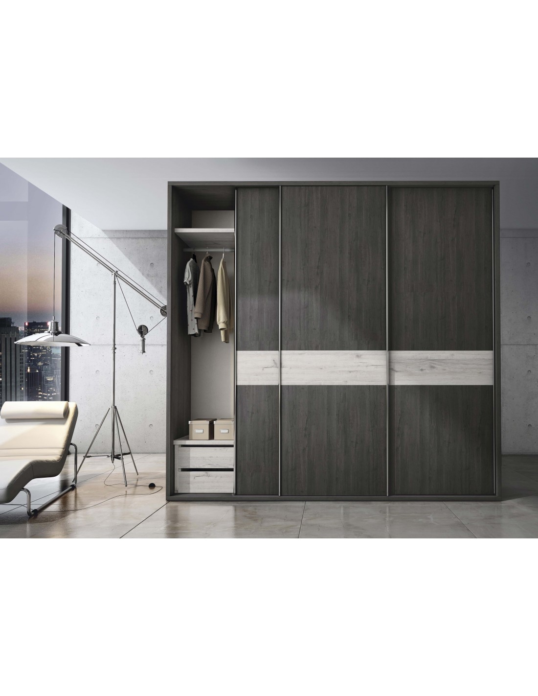 Le diseñamos su vestidor a medida haciéndole un dibujo en 3D para que pueda ver cómo quedaría montado y poder realizar los cambios que desee sobre el diseño y hacer pruebas de color y accesorios.
