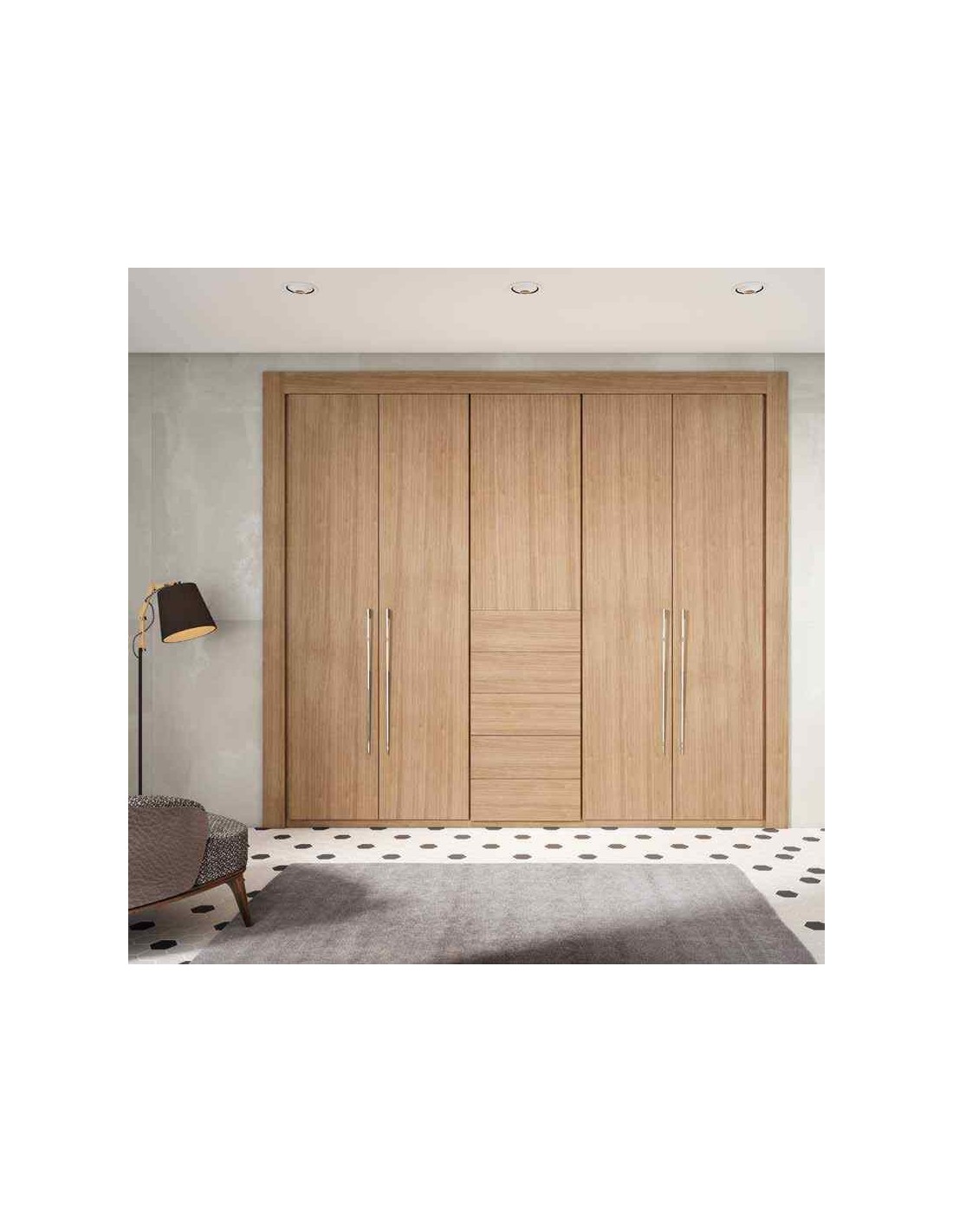 Trabajamos con todos los materiales existentes (madera, lacado, formica, DM ), además podrá elegir el color que necesite entre más de 100 diferentes y seleccionar el modelo de tirador entre 50 distintos, sin tirador, embutidos o de pulsador; pero lo más importante, todos ellos los hacemos a medida, para poder adaptarlos a su habitación, haciendo los armarios a medida e incluso cajeándoles las columnas o vigas que pueda tener.