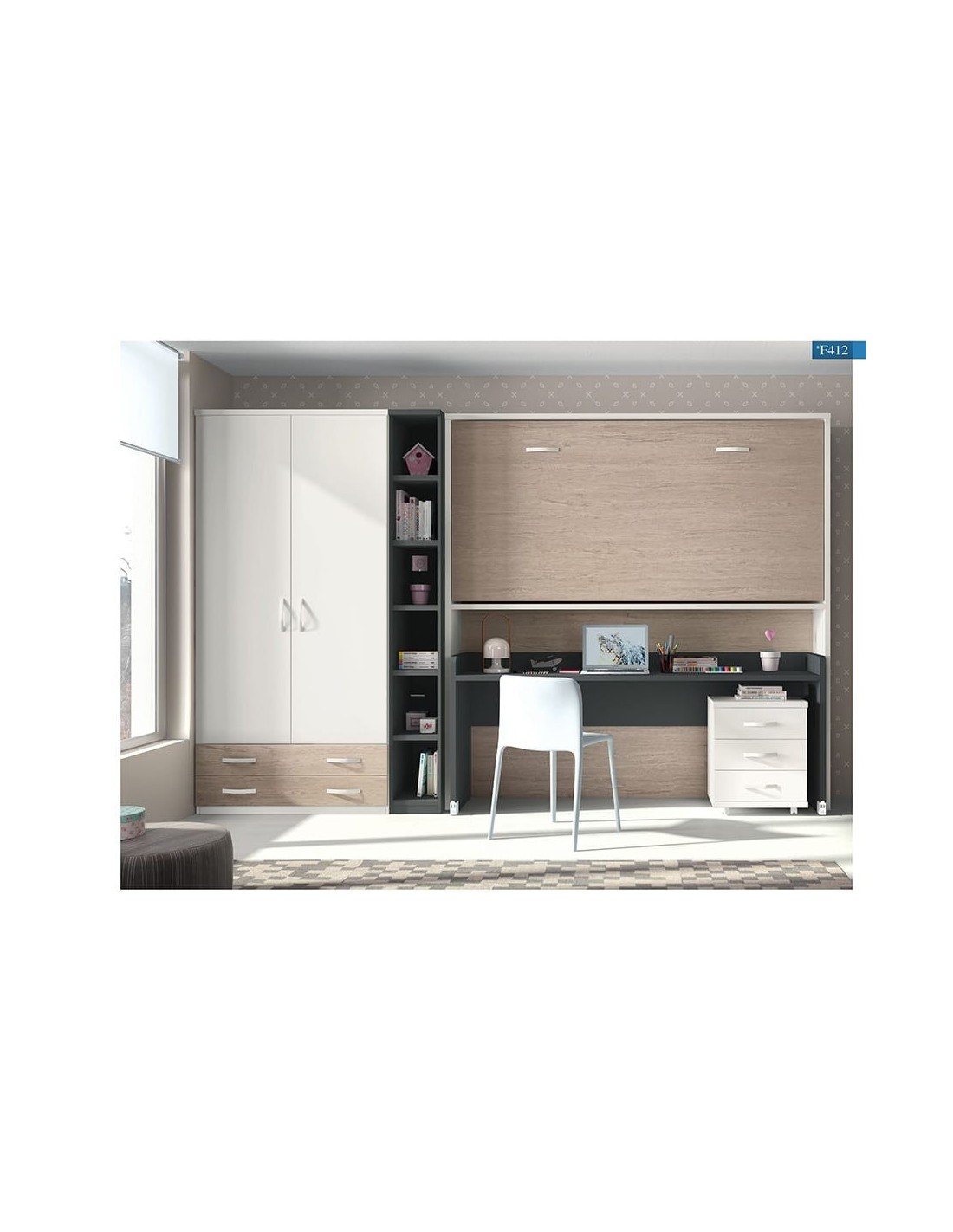 Dormitorio juvenil cama abatible escritorio armario madera moderno