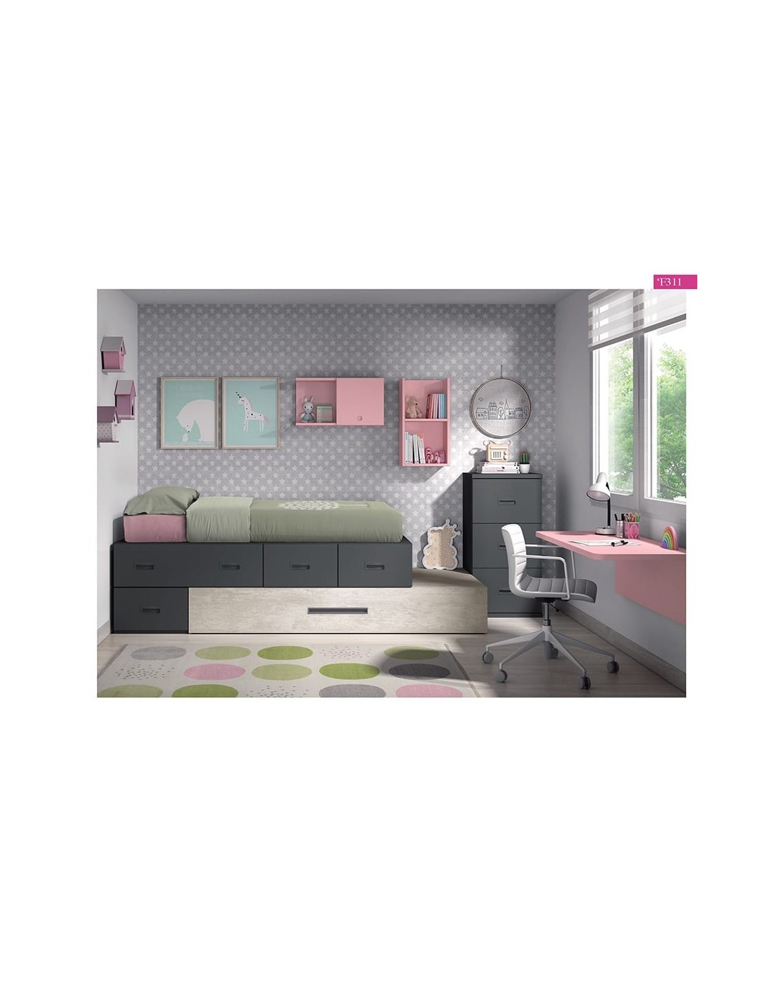 Dormitorio juvenil cama nido modular escritorio madera moderno