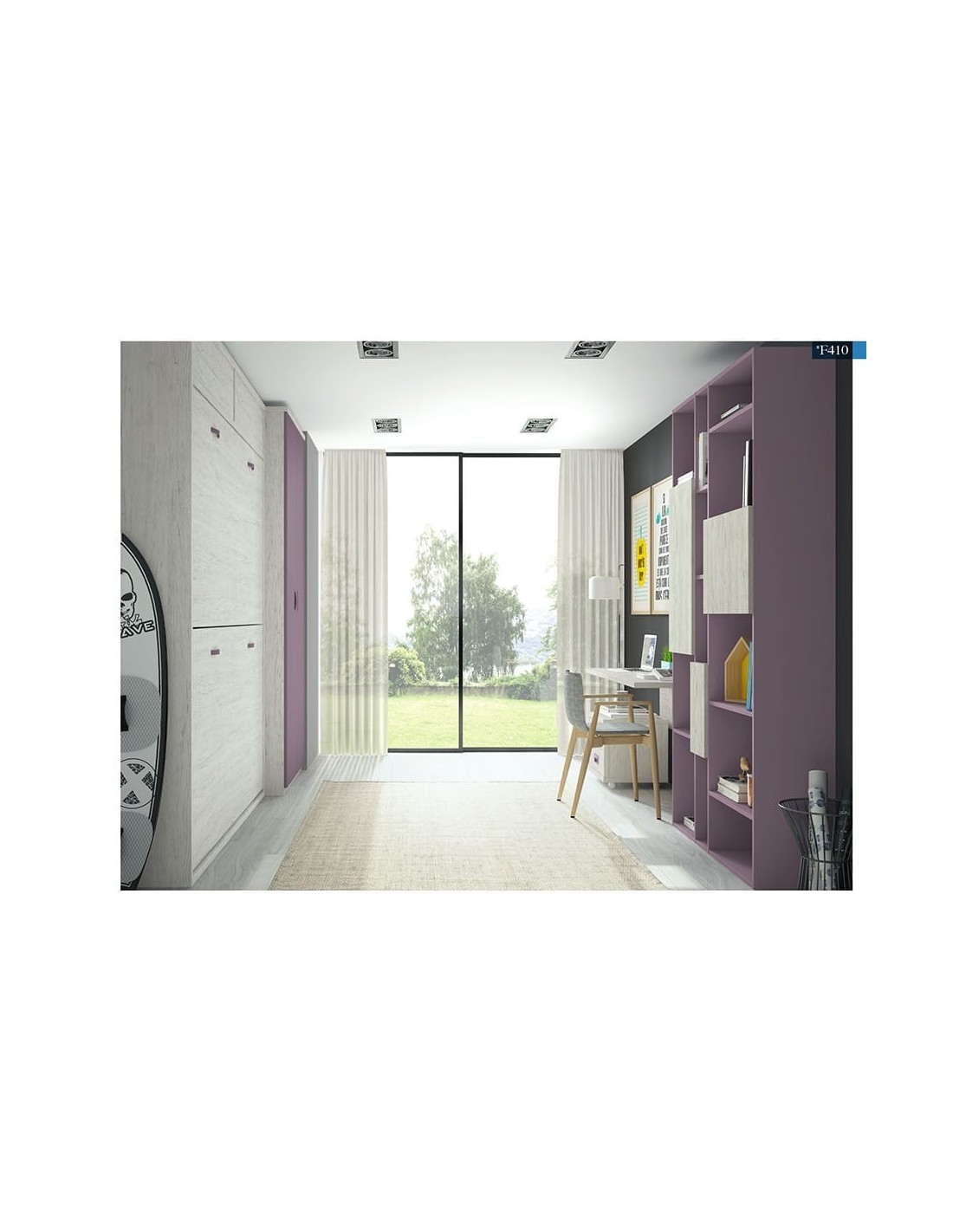 Dormitorio juvenil camas abatible escritorio armario madera estanteria moderno