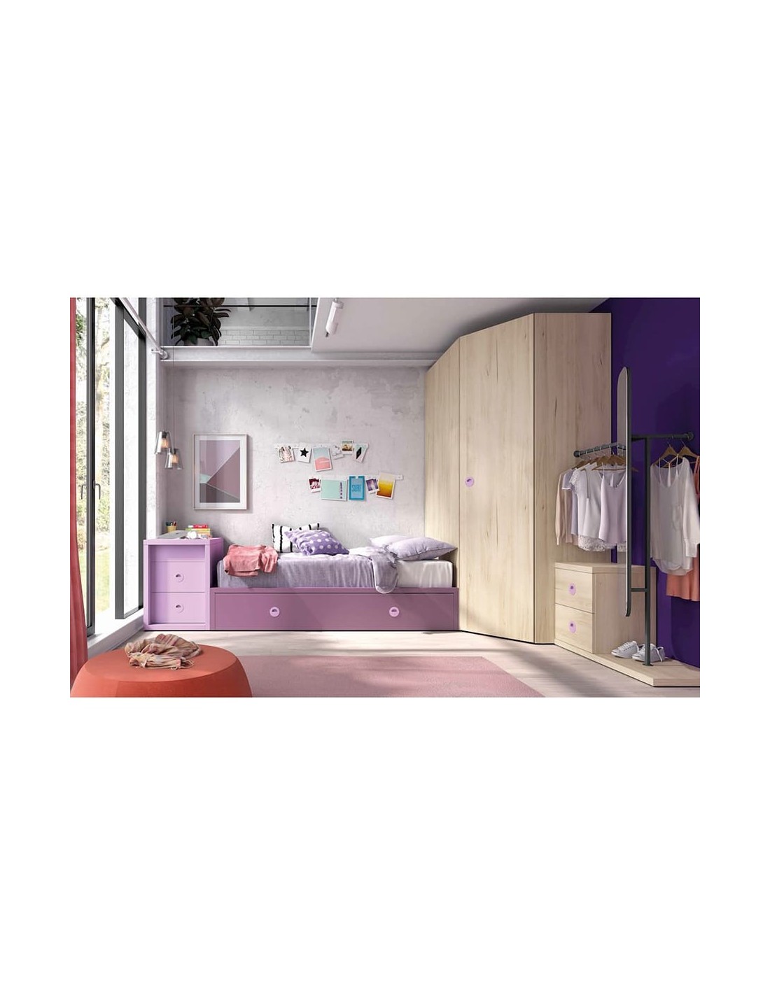 Dormitorio juvenil con cama nido y armario rincon con gran capacidad