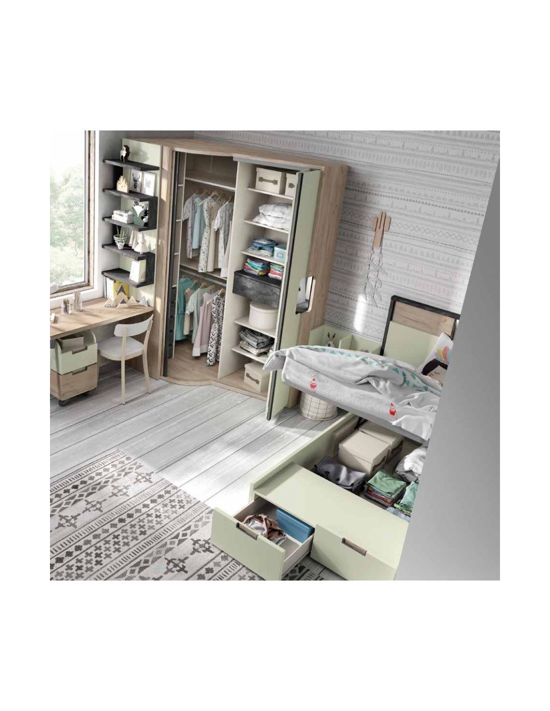 Dormitorio juvenil moderno colores y medidas a elegir cama compacta o nido escritorios y armarios (67)