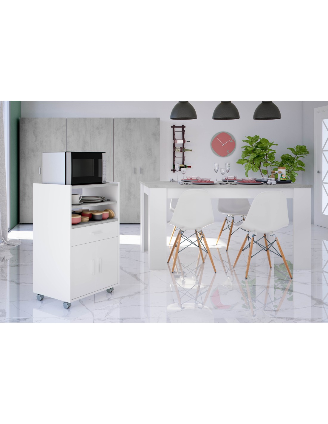 Mueble microondas 1 Cajón + 2 Puertas Blanco Artik/Cemento CHEFF