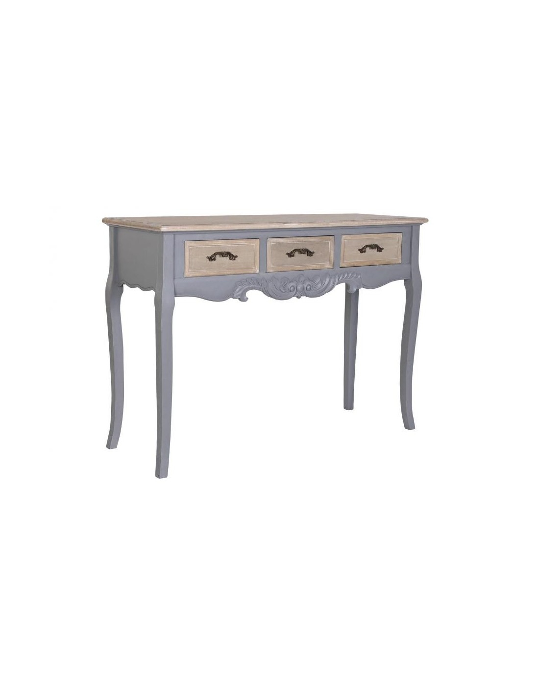 Consola Paulownia Mdf 109,5x39x78,5 3 Cajones Gris