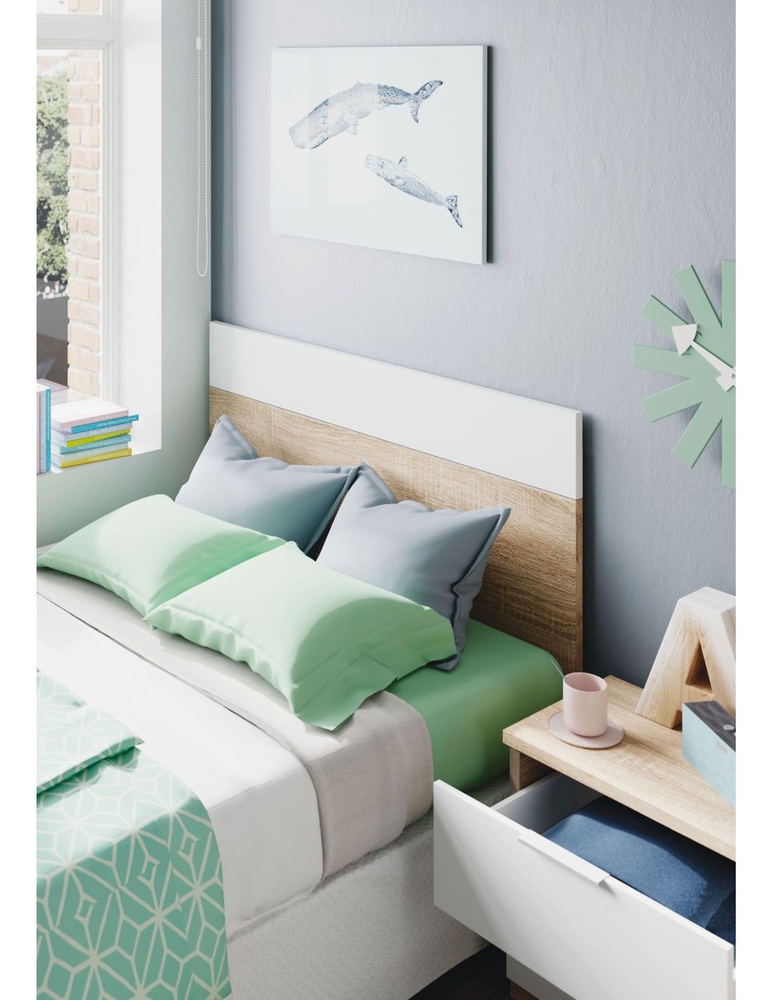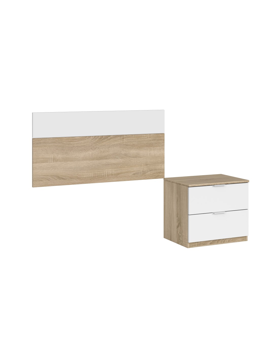 Cabezal LUCA 100 + Mesita con 2 cajones - Roble Candian/Blanco Artik