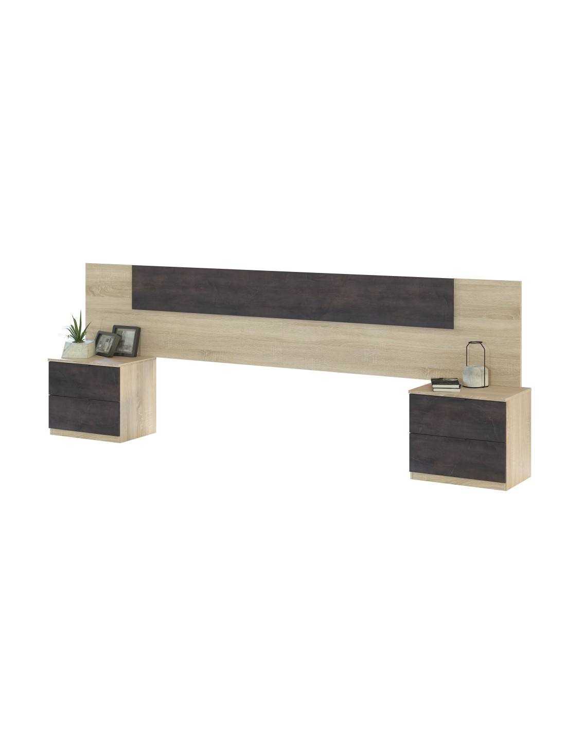 Cabezal NOON + 2 mesitas 2 cajones Roble Canadian/Óxido