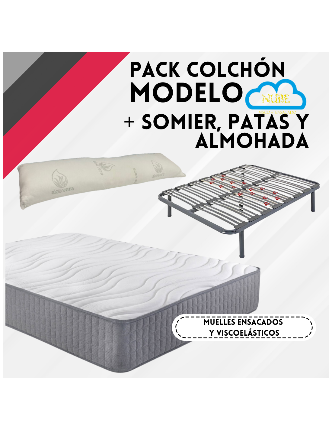 Pack Colchón Nube Plus Visco y Somier Multiláminas + Patas + Almohada