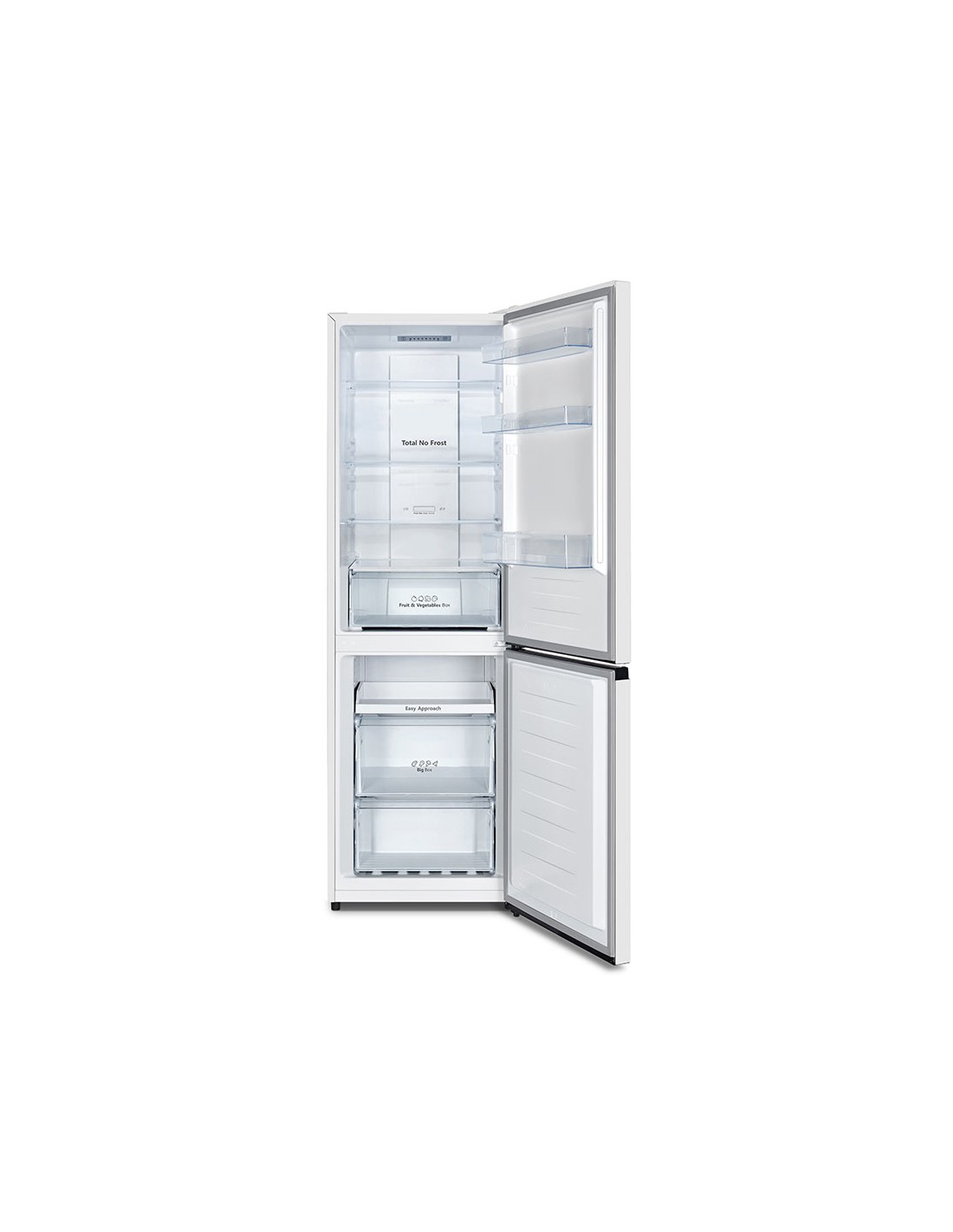 El Hisense RB390N4AWE es un frigorífico combi de 304 L netos con tecnología Total No Frost, sistema de aire uniforme Multi Air Flow y compartimento FreshZone para conservar alimentos frescos.