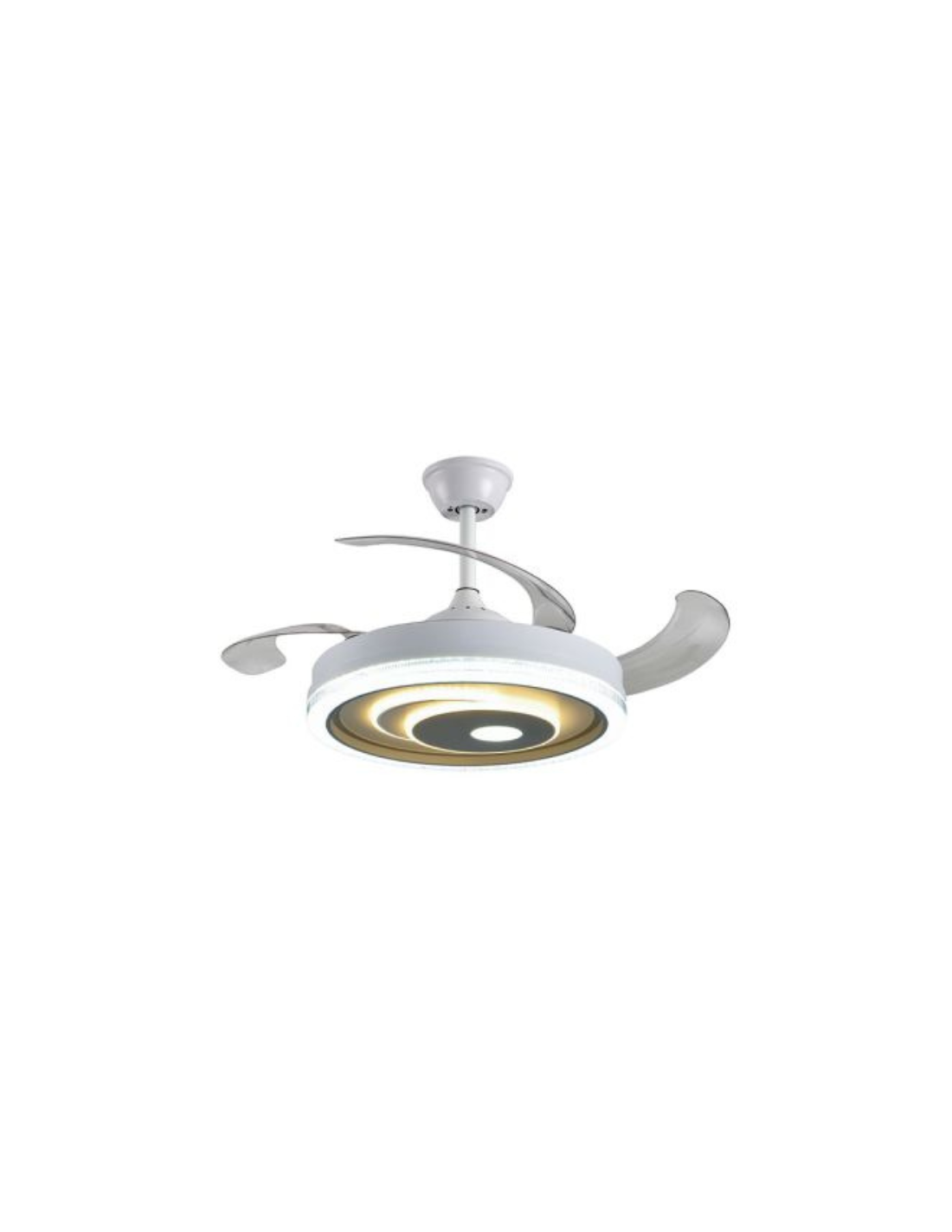 Descubre la serie TRIO, la fusión perfecta de funcionalidad y estilo en ventiladores de techo con luz. Con su tecnología LED integrada, este ventilador ofrece iluminación eficiente y fresca en un elegante color blanco. Sus 4 aspas retráctiles te brindan un diseño versátil, mientras que su potencia máxima de 72W y 6480 lm iluminan tu espacio. Una elección sofisticada que se adapta a tu comodidad y estilo