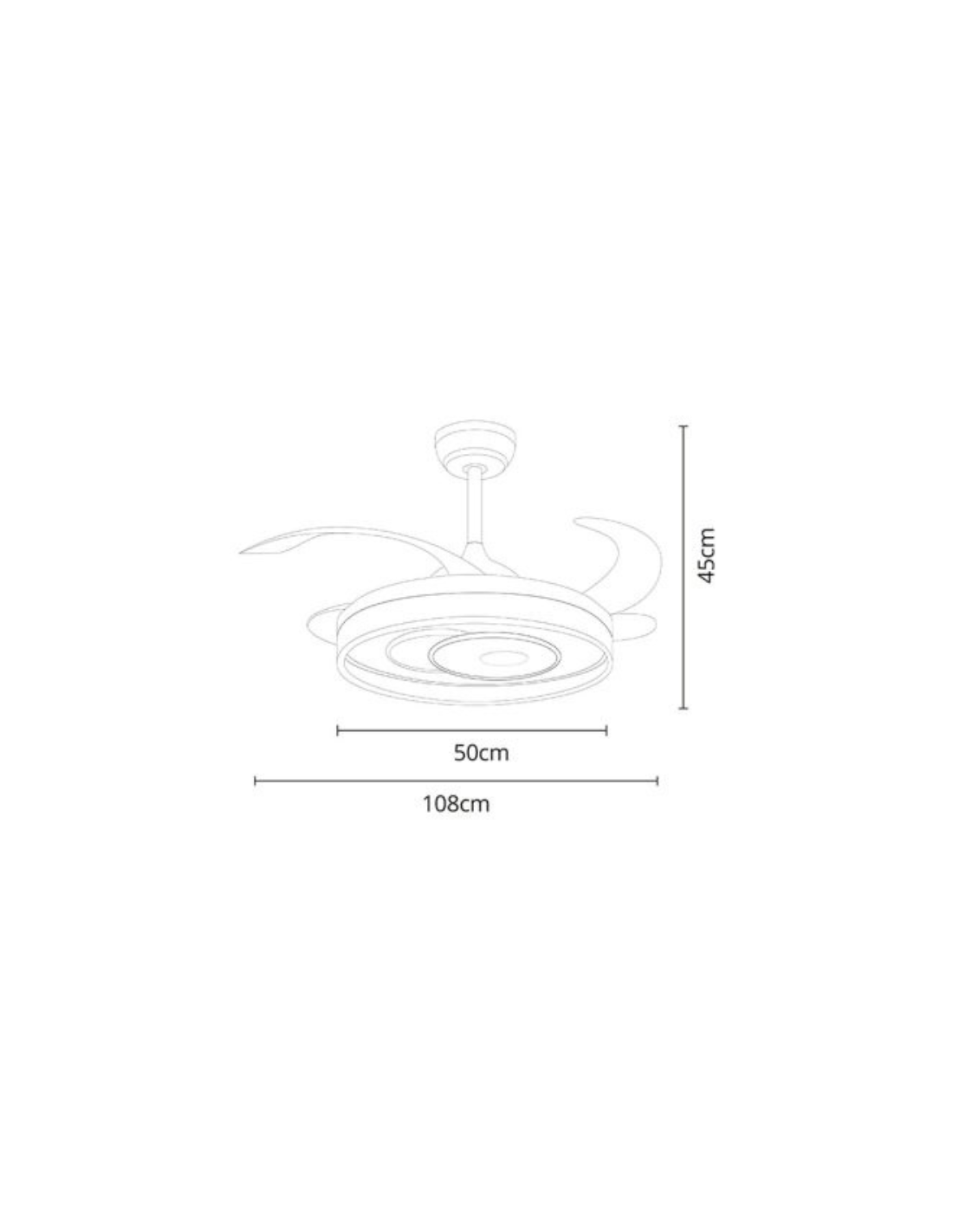 - Tiene una medida de Al.45xD.108cm (D.50 cm con las aspas retraídas)