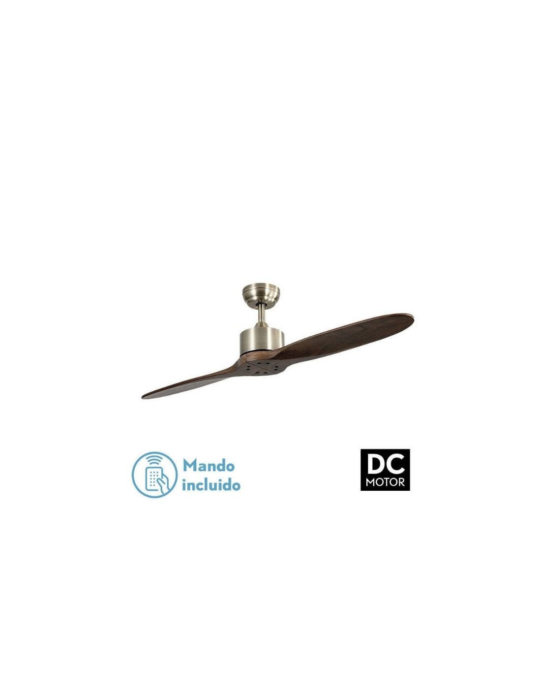 Ventilador de techo con dos aspas sin luz en marrón con motor DC