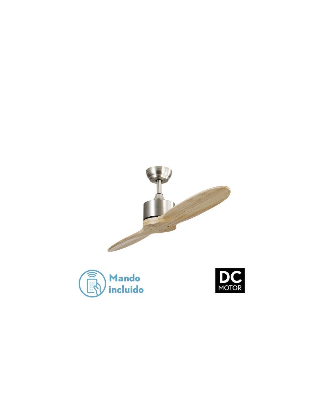 Ventilador de techo con dos aspas color madera clara Motor DC