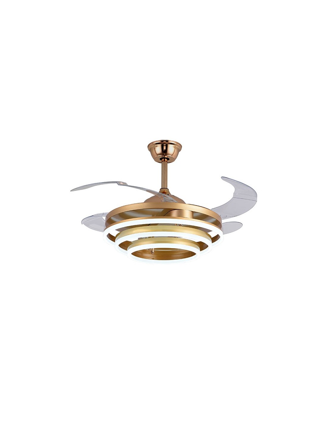 Ventilador DC SFERA oro, 4 aspas retráctiles, 72W LED 3000|4000|6000K, Al.45xD.108/50cm