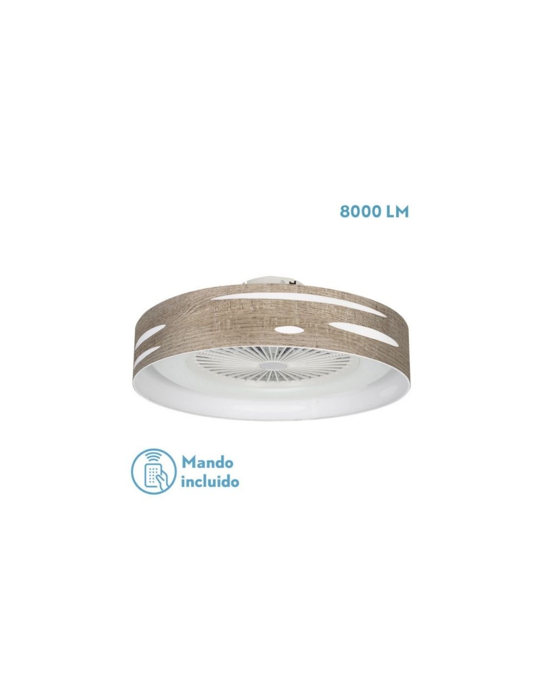 El ventilador plafón de madera rasgada con luz LED regulable es una opción única para aquellos que buscan una mezcla de estilo y funcionalidad.