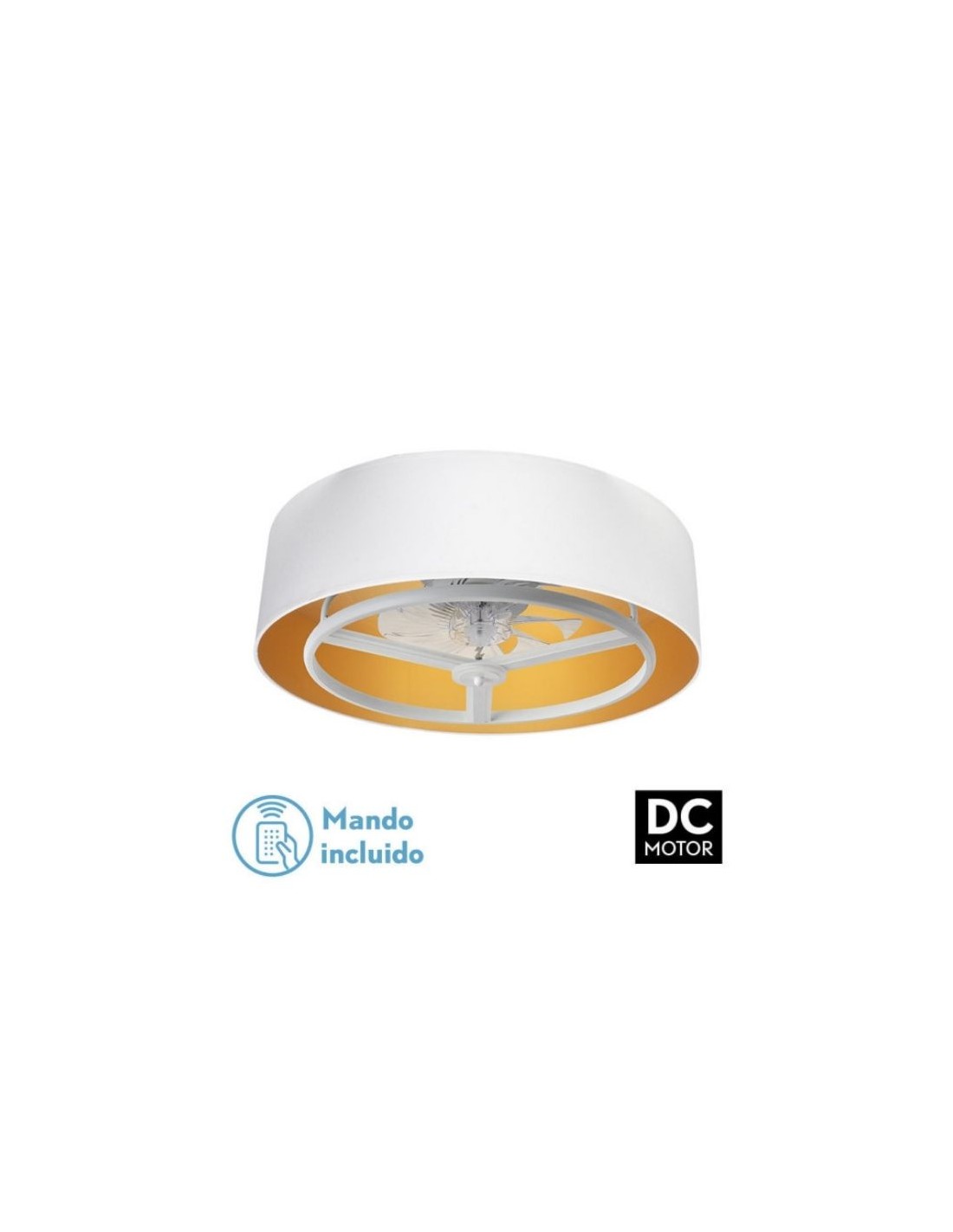Ventilador plafón DC silencioso con mando en dorado y blanco - Anuska