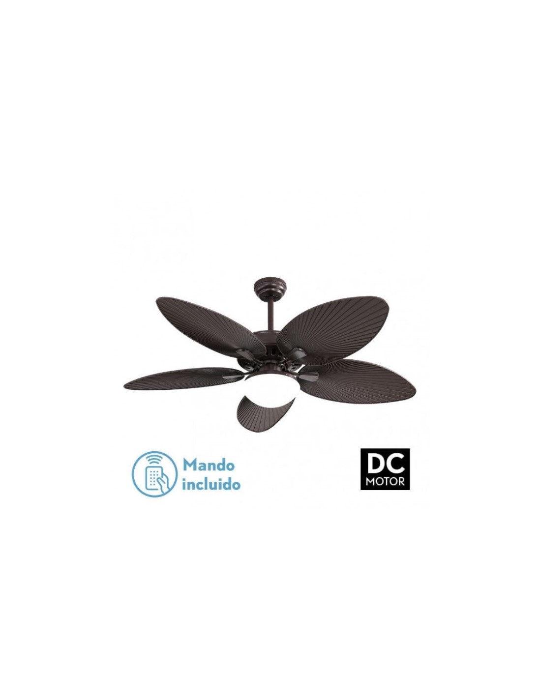 ¡Disfruta del aire fresco y tropical en tu hogar! Con nuestro ventilador de techo de aspas grandes estilo tropical, sentirás como si estuvieras en una isla paradisíaca. Controla la velocidad y la intensidad del flujo de aire desde tu sofá con el mando a distancia incluido.