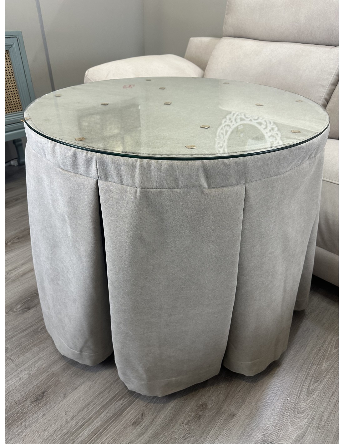 La ropa redonda de camilla antimanchas en color beige es la combinación perfecta de protección y diseño. Su tejido repele líquidos y suciedad, garantizando un mantenimiento sencillo y una protección eficaz para la superficie de la mesa. Su tono beige neutro aporta un toque de sobriedad y elegancia, adaptándose a cualquier decoración, desde ambientes minimalistas hasta espacios más cálidos y tradicionales.