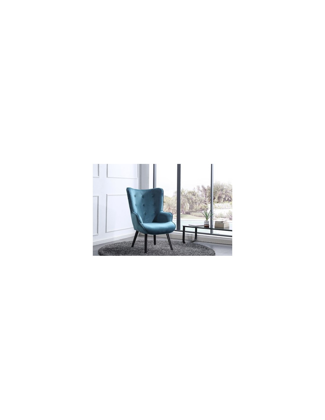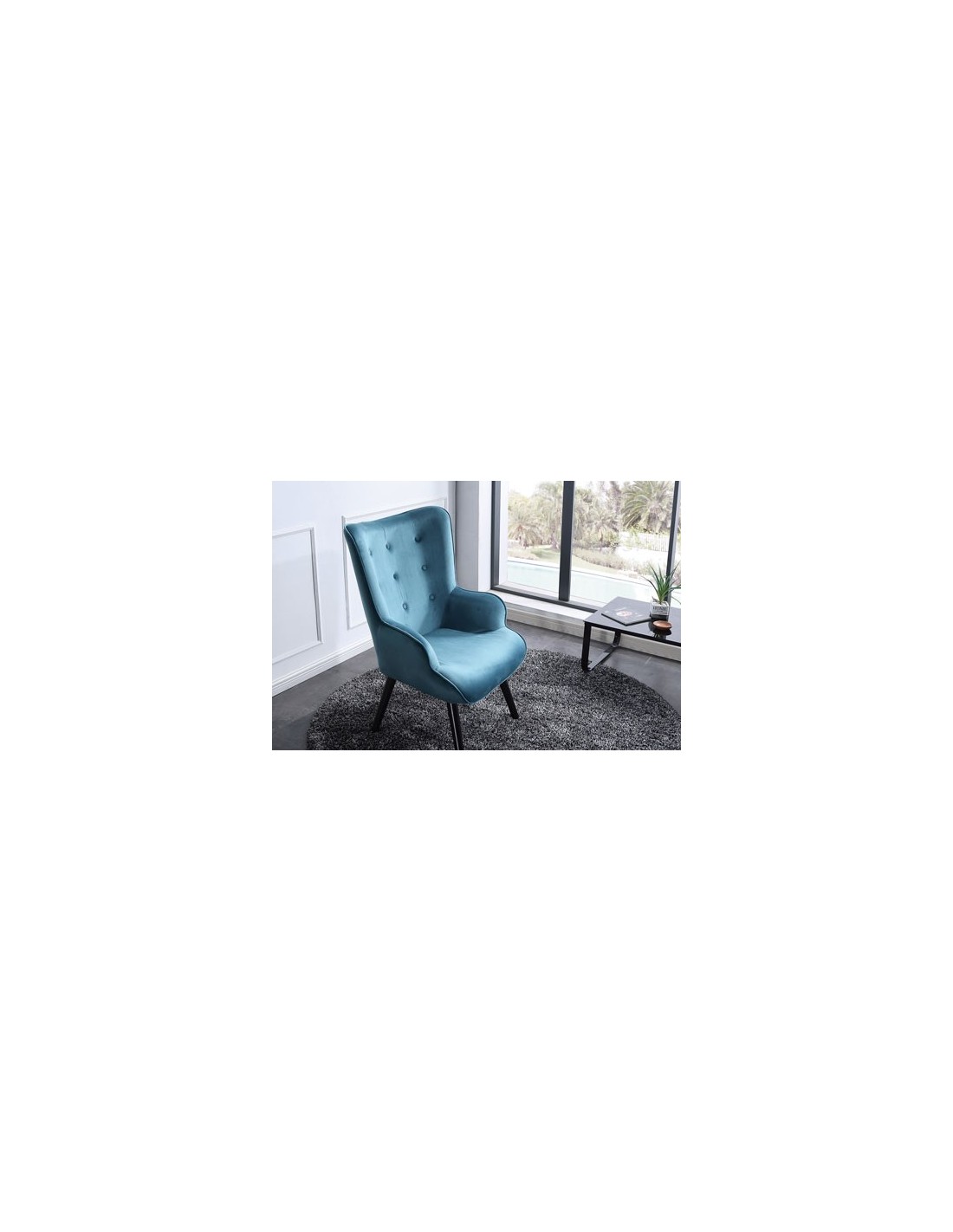 Butaca Voss Diseño moderno Botones tapizados decorativos Patas nórdicas en madera color negro Tejido verde aguamarina Medidas: 71 x 75 x 95 cm - Unidad venta : caja 1 Ud - Volumen : 0 161 M 3 x Ud Entradas previstas : 71 Ud(s) - 08/03 Colores disponibles : Linen blanco En stock : 15 Uds Verde aguamarina 71 Ud(s) - 08/03 Tejido gris 73 Ud(s) - 08/03 Tejido mostaza 32 Ud(s) - 08/03 En stock : 15 Uds