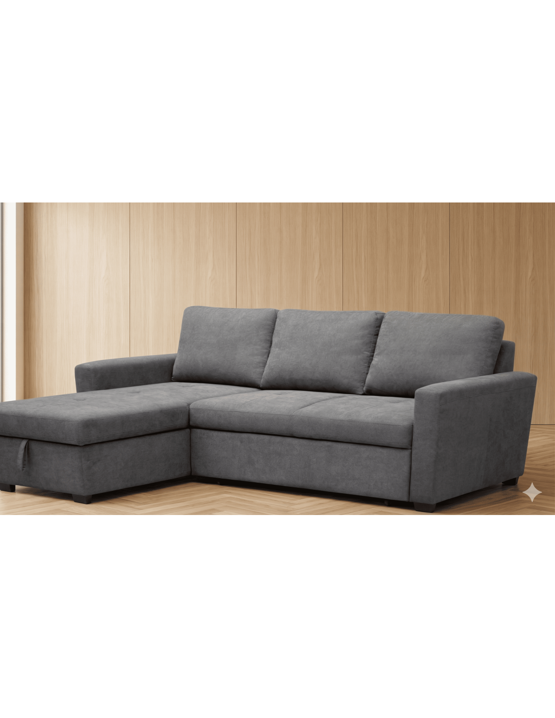 Eleva el confort de tu hogar con el Modelo PATON, el sofá definitivo que combina descanso, estilo y orden. Esta pieza versátil no solo se convierte en una amplia cama en segundos, sino que incluye un práctico arcón de almacenamiento bajo la chaise longue. Su diseño contemporáneo en gris antracita es el equilibrio perfecto entre funcionalidad y elegancia para tu salón. 🏡