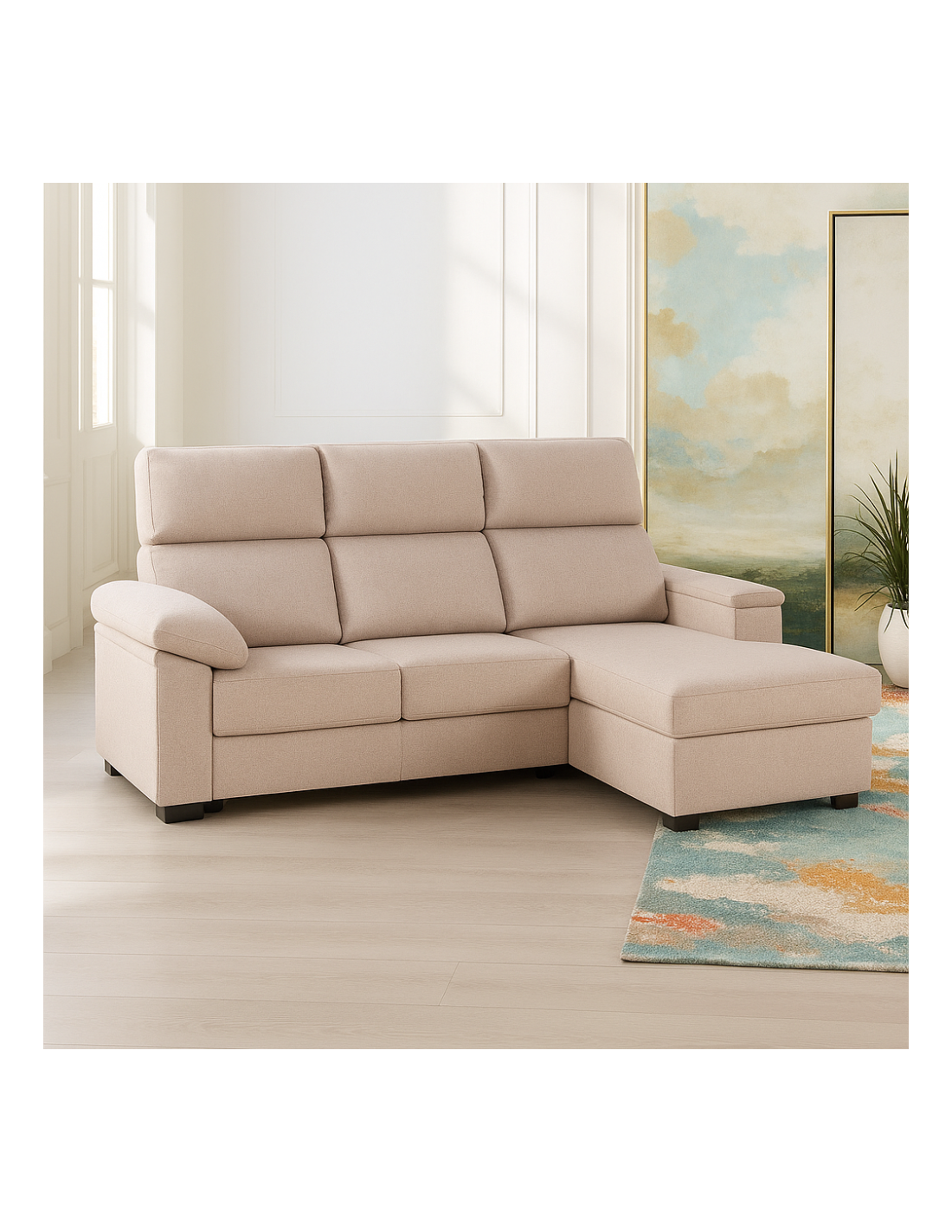 Diseñado para ofrecer el máximo confort sin comprometer la versatilidad, el Chaise Longue es la pieza clave que tu salón necesita. Su gran ventaja competitiva es su diseño reversible, que te permite colocar la extensión a la derecha o a la izquierda según la distribución de tu hogar, adaptándose a tus cambios de vida.