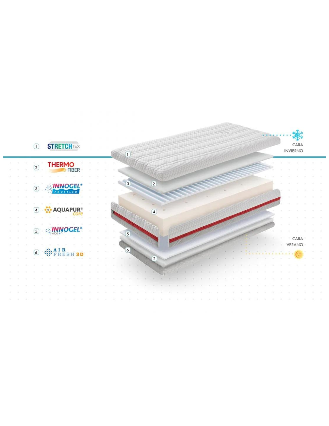 Cada detalle, desde la selección de materiales hasta la estructura perfilada del núcleo, está diseñado para proporcionar el máximo confort y seguridad. La inclusión de tecnologías como Visco Innogel y HR Aquapur ofrece una superficie de descanso que se adapta perfectamente al cuerpo del bebé, mientras facilita una óptima ventilación. Este colchón es la solución ideal para padres que buscan lo mejor para el descanso de sus hijos.