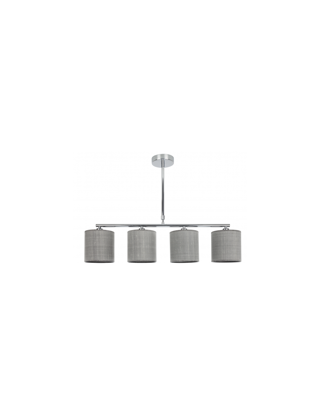 Lámpara de cuatro luces serie San Miguel de color gris/cromo. Realizada en material textil y armazón de metal regulable en altura. Sus dimensiones son, 80x75x14 cm y el peso neto 1140 gr. El portalámparas es E14 y es ideal para grandes salones. Puede completar la iluminación de su hogar con las lámparas de tres y dos luces.