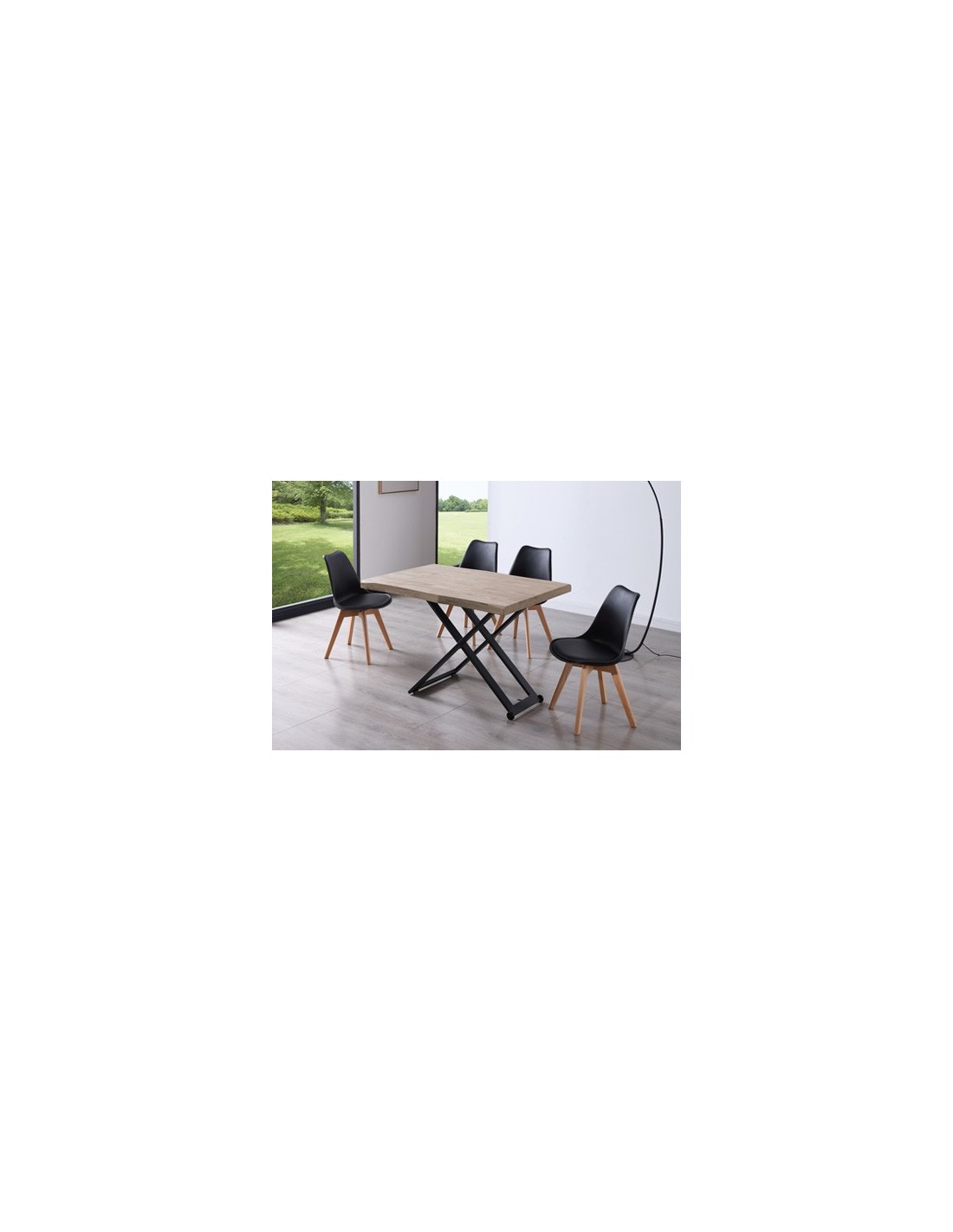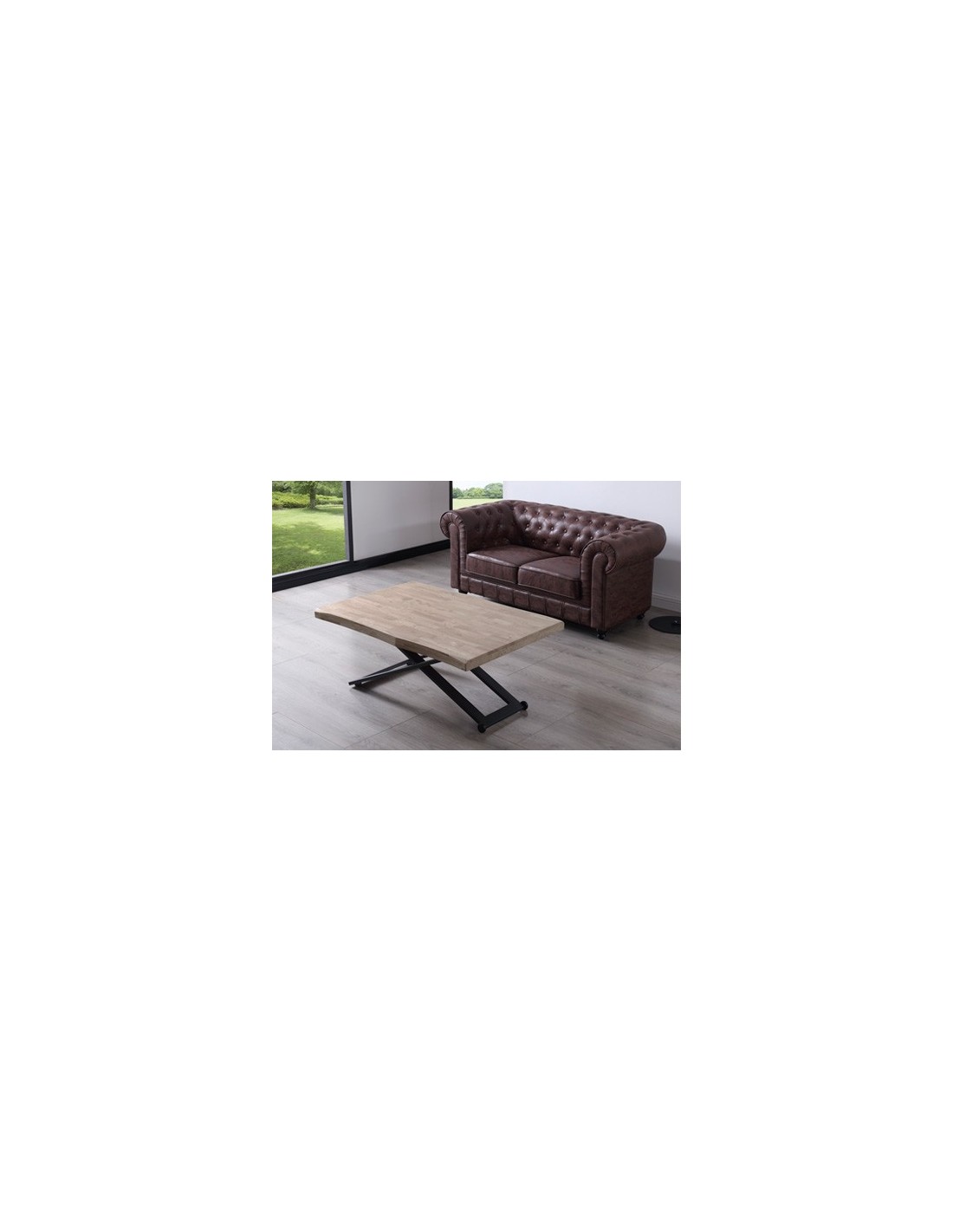 MESA CENTRO ELEVABLE ZOE 120 x 80 CM ROBLE HONEY / NEGRO TAPA CON FORMA