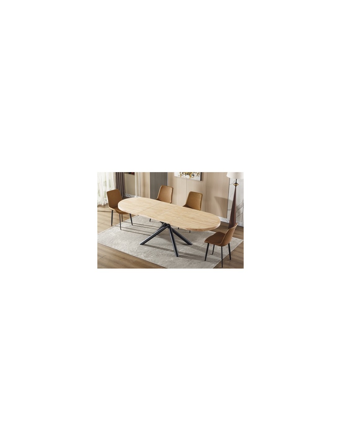 Mesa comedor oval extensible Tapa en madera de roble 2 extensibles individuales de 40 cm ancho Extensible a 200 o 240 cm Color Nordish Patas metálicas en color negro Medidas: 160 - 200 - 240 x 90 x 76 cm - Unidad venta : caja 1 Ud - Volumen : 0 265 M 3 x Ud Entradas previstas : 20 Ud(s) - 22/03 Colores disponibles : Roble nordish / negro 20 Ud(s) - 22/03 Roble honey / negro 15 Ud(s) - 22/03 20 Ud(s) - 22/03