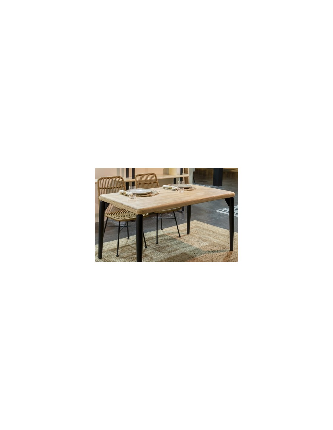 Tapa en madera de roble Bordes y esquinas redondeados Patas metálicas en color negro Medidas: 140 x 80 x 76 cm - Unidad venta : caja 1 Ud - Volumen : 0 088 M 3 x Ud Entradas previstas : Colores disponibles : Bordes redondeados Roble nordish / negro En stock : 12 Uds En stock : 12 Uds