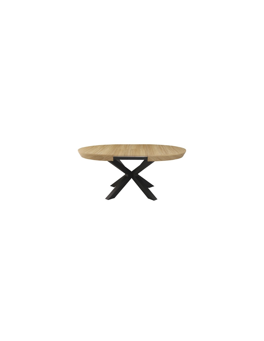 Mesa comedor redonda extensible Extensible hasta 180 cm Almacenamiento de extensible bajo la tapa Tapa en MDF 18 mm grosor y papel laminado 3D Grosor borde tapa 100 mm Patas metálicas color negro Medidas: 130 - 180 x 130 x 76 cm - Unidad venta : caja 1 Ud - Volumen : 0 442 M 3 x Ud Entradas previstas : 28 Ud(s) - 14/04 Colores disponibles : Oak / Negro 28 Ud(s) - 14/04 Oak / Blanco 24 Ud(s) - 14/04 28 Ud(s) - 14/04