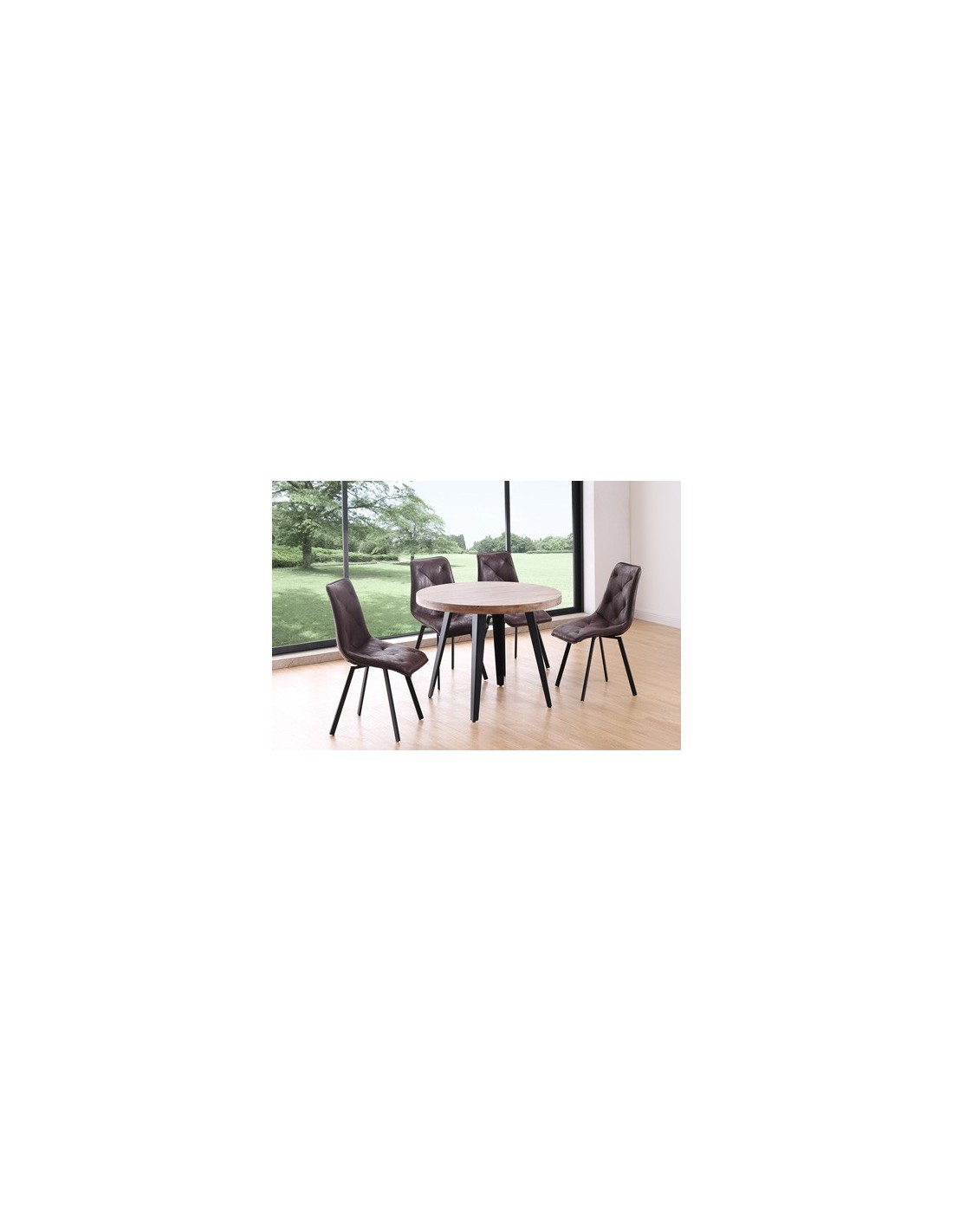 MESA COMEDOR REDONDA FIJA BERG 100 CM ROBLE HONEY / NEGRO