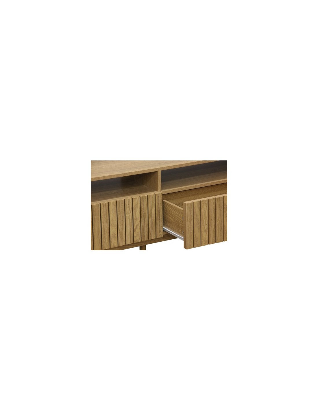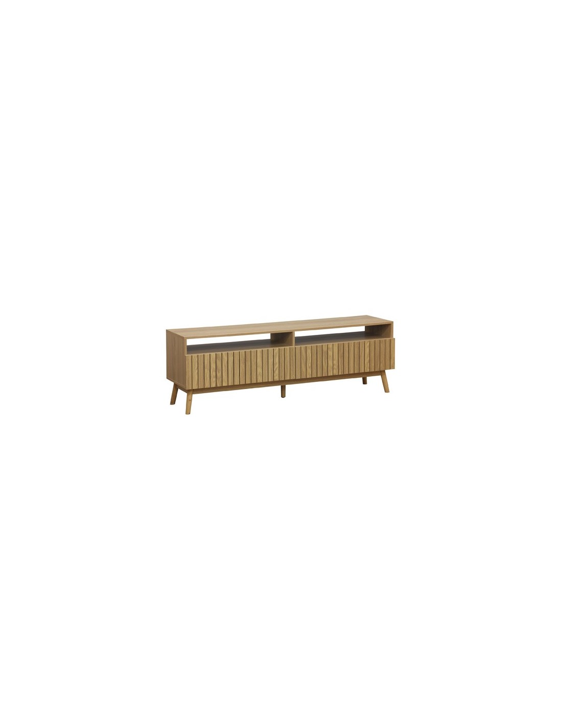 Mueble TV con 2 cajones de gran capacidad Papel laminado / chapa fresno Frentes cajónes en alistonado decorativo Guias metálicas Patas en madera Medidas: 150 x 40 x 50 cm - Unidad venta : caja 1 Ud - Volumen : 0 1 M 3 x Ud Entradas previstas : Colores disponibles : Fresno En stock : 10 Uds En stock : 10 Uds