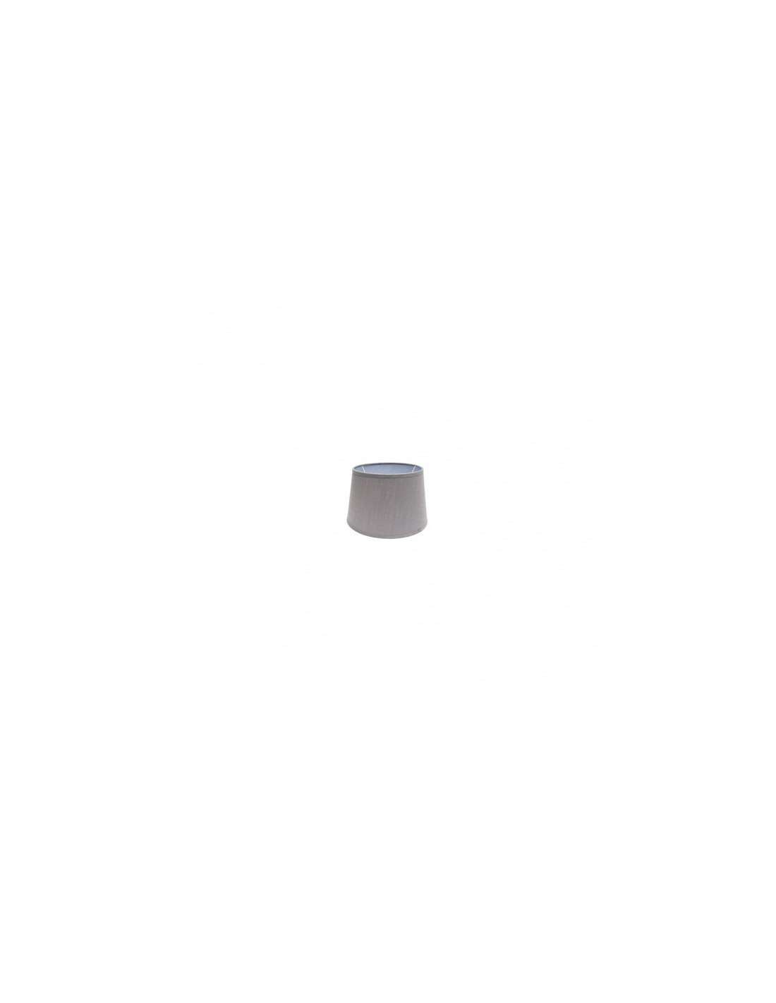 Pantalla cónica abierta serie AGUEDA de color GRIS. Realizado en material textil lino. Diseñada para agarre con pinza. Sus dimensiones son de 10x8x8 centímetros y un peso neto de 50 gramos. También disponible en color beis y en varios tamaños.
