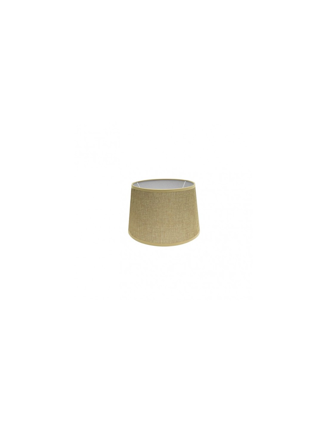 Pantalla cónica abierta serie IRENE de color BEIS. Realizado en material textil saco-yute. Diseñada para un portalámparas E27. Sus dimensiones son de 20x15x12 centímetros y un peso neto de 105 gramos. También en varios tamaños, desde 45 a 10 centímetros de diámetro.