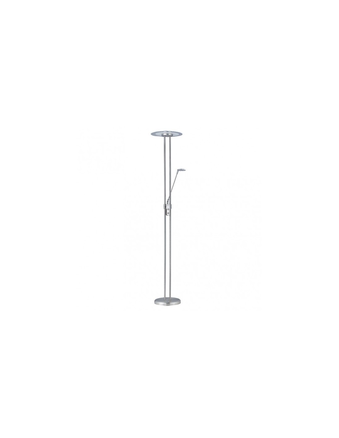 Pie de salón ERIDANI realizado en metal color NIQUEL y cristal. Dispone de tecnología LED INTEGRADA, con brazo lector articulable, pudiéndose dirigir la luz hacia donde desee. Con dos encendidos independientes y regulador de intensidad. De diseño moderno y elegante, muy decorativo para salas y salones. Su potencia en la luz principal es de 18 watios 1800 lúmenes y la potencia de luz en el lector es de 5 watios 500 lúmenes, ambos con una temperatura de luz de 4000K, Blanco Natural. Tiene unas dimensiones de 180x32x32 centímetros. Modelo también disponible en color cuero.