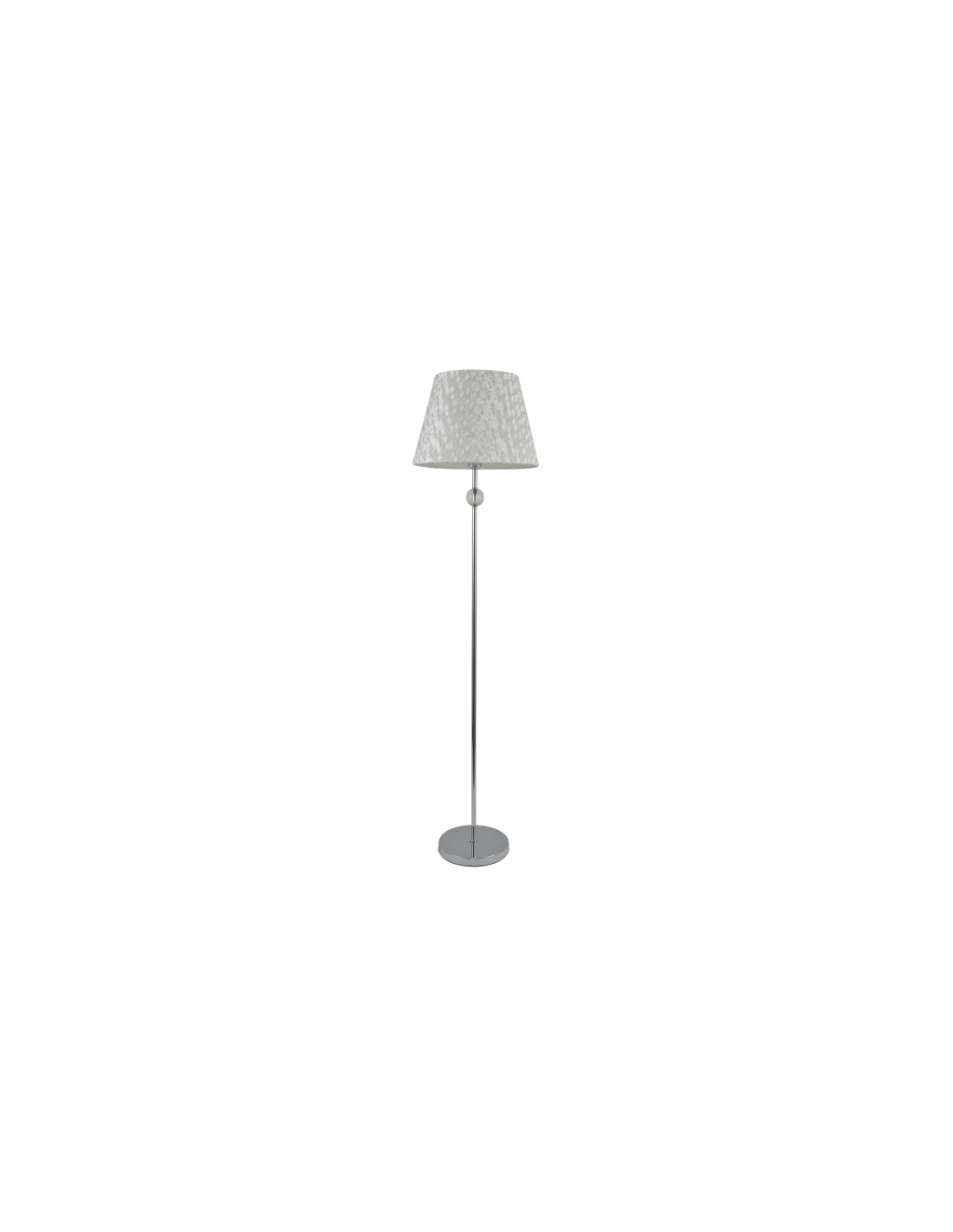 Pie de salón serie Cancún en color cromo. Realizado en metal y pantalla textil de color blanco. Este pie de salón forma parte de una familia de lámpara de seis, cinco y tres luces además de aplique y sobremesa en color cromo. El portalámparas es E27.