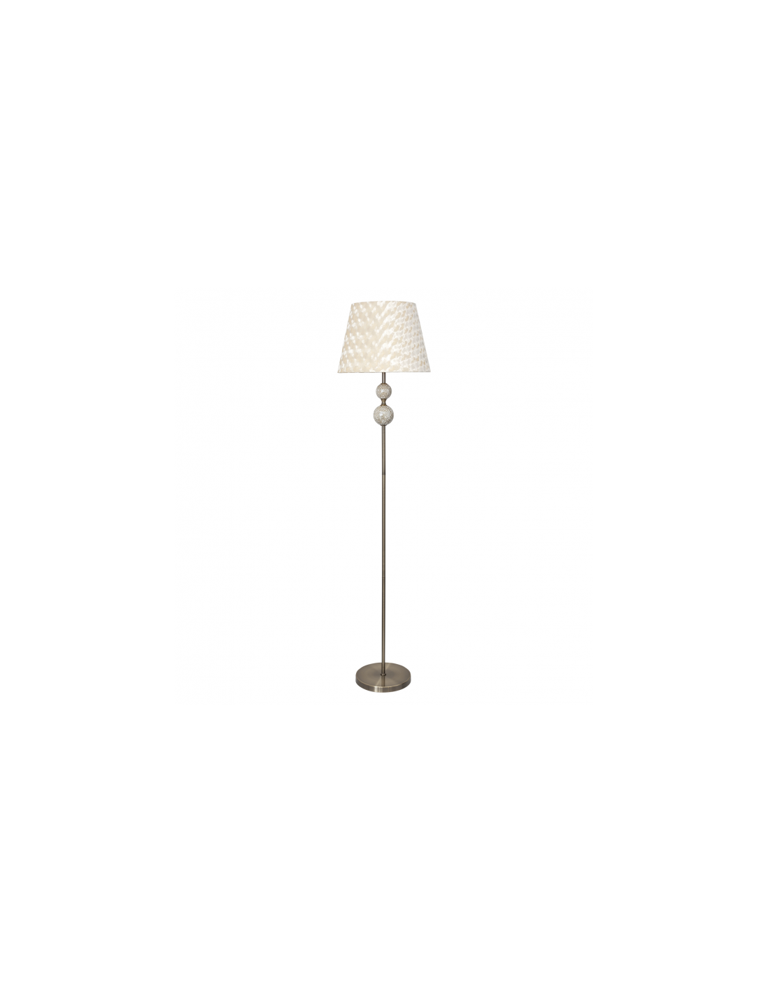 Pie de salón serie Mendoza de color cuero. Realizado en metal, cristal y material textil de color beis. Este pie de salón se caracteriza por un diseño muy original que le aporta las bolas de pequeños cristales del armazón. La pantalla también es de gran originalidad ya que imita el efecto nacarado. Sus dimensiones son 160x38x38 cm y está disponible en color cuero también. El portalámparas es E27. Puede completar la familia puede adquirir el aplique, sobremesa, lámpara de ocho luces, cinco luces y de tres luces en color cuero.
