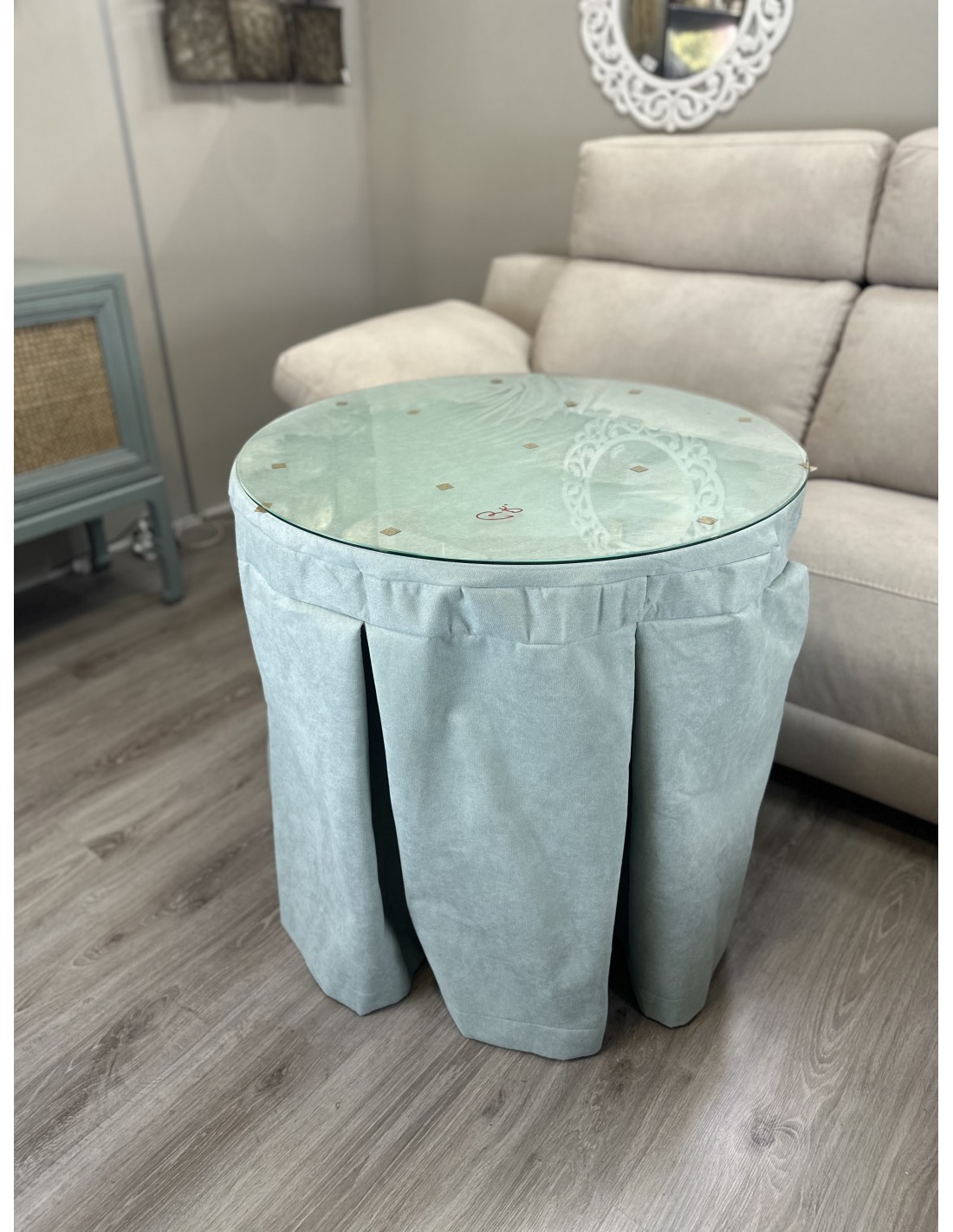 La ropa redonda de camilla antimanchas en color verde es la opción ideal para quienes buscan combinar protección y estilo en su hogar.
