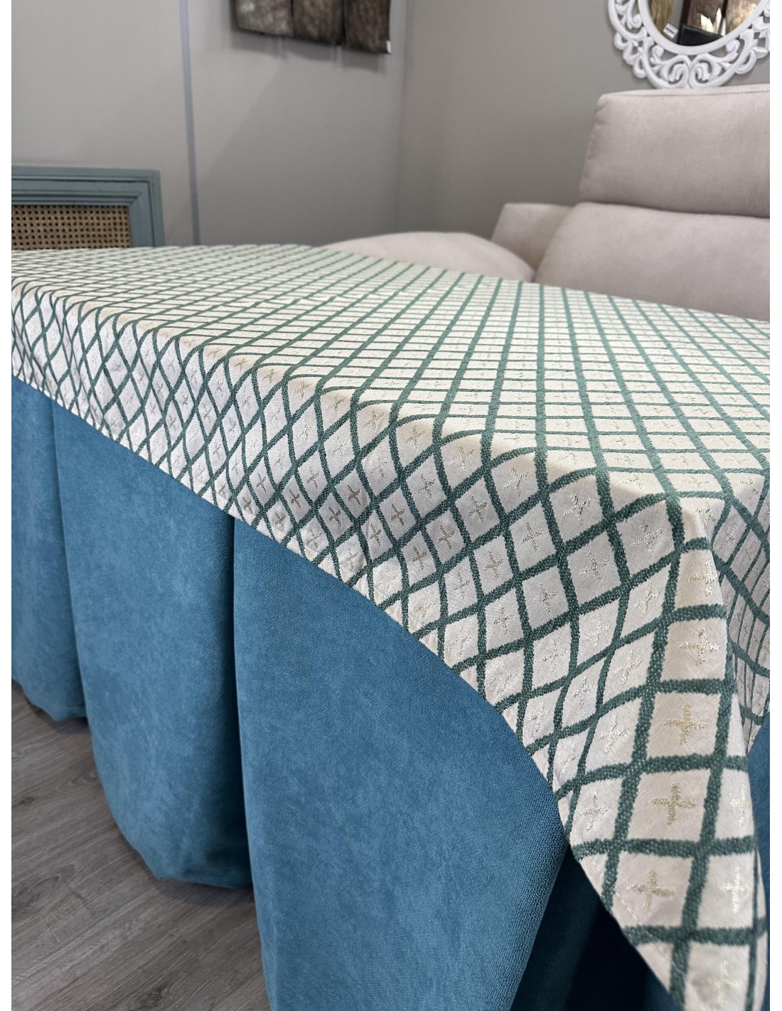 Ropa de Mesa Camilla Antimanchas Aterciopelada Triple Grueso Reforzada 10 pliegues Kumar Verde con Tapete Miranda