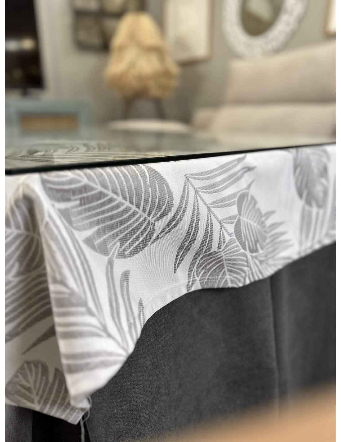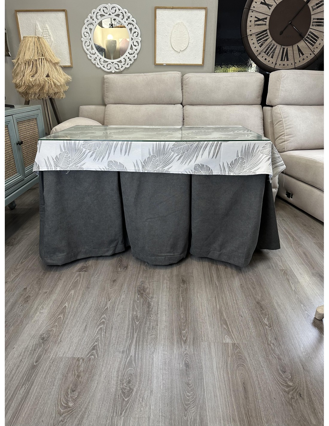 Ropa de Mesa Camilla Antimanchas Aterciopelada Triple Grueso Reforzada 10 pliegues profundos Gris con Tapete Palmeras Gris