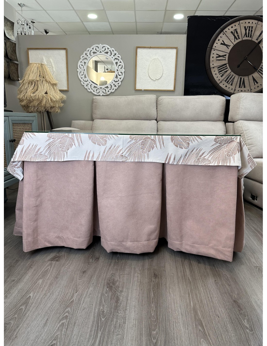 Ropa de Mesa Camilla Antimanchas Aterciopelada Triple Grueso Reforzada 10 pliegues Rosa con Tapete Palmeras Rosa