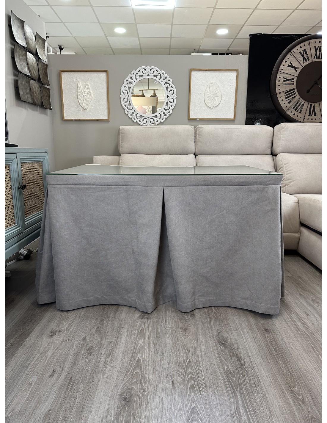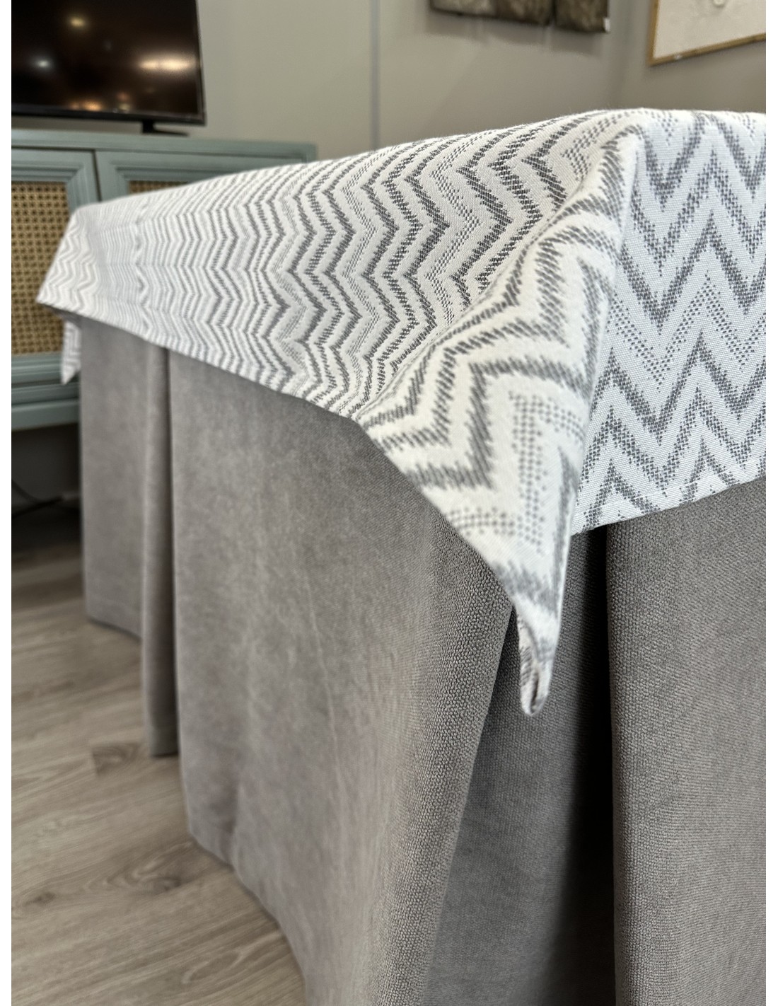 Ropa de Mesa de Camilla Antimanchas Aterciopelada Triple Grueso Gris Moderno con Tapete Deluxe