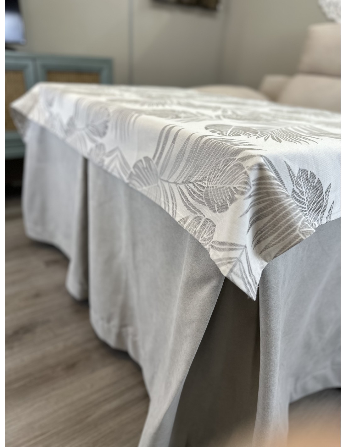 Ropa de Mesa de Camilla Antimanchas Aterciopelada Triple Grueso Gris Perla con Tapete Deluxe Palmeras Gris