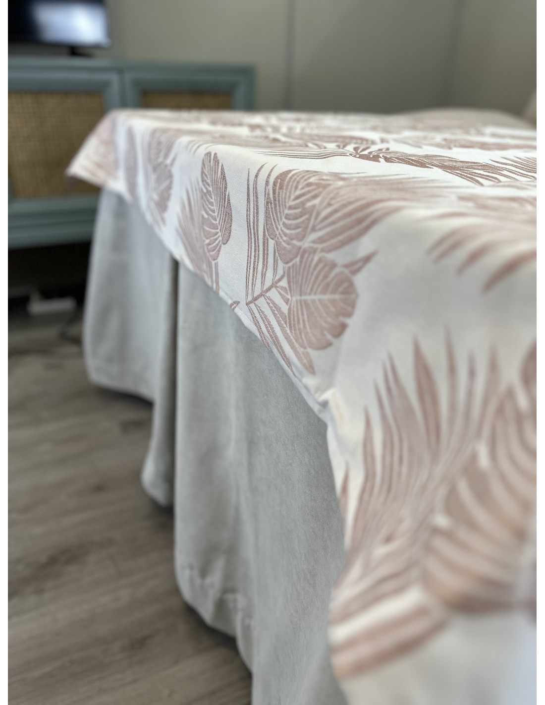 Ropa de Mesa de Camilla Antimanchas Aterciopelada Triple Grueso Gris Perla con Tapete Deluxe Palmeras Rosa